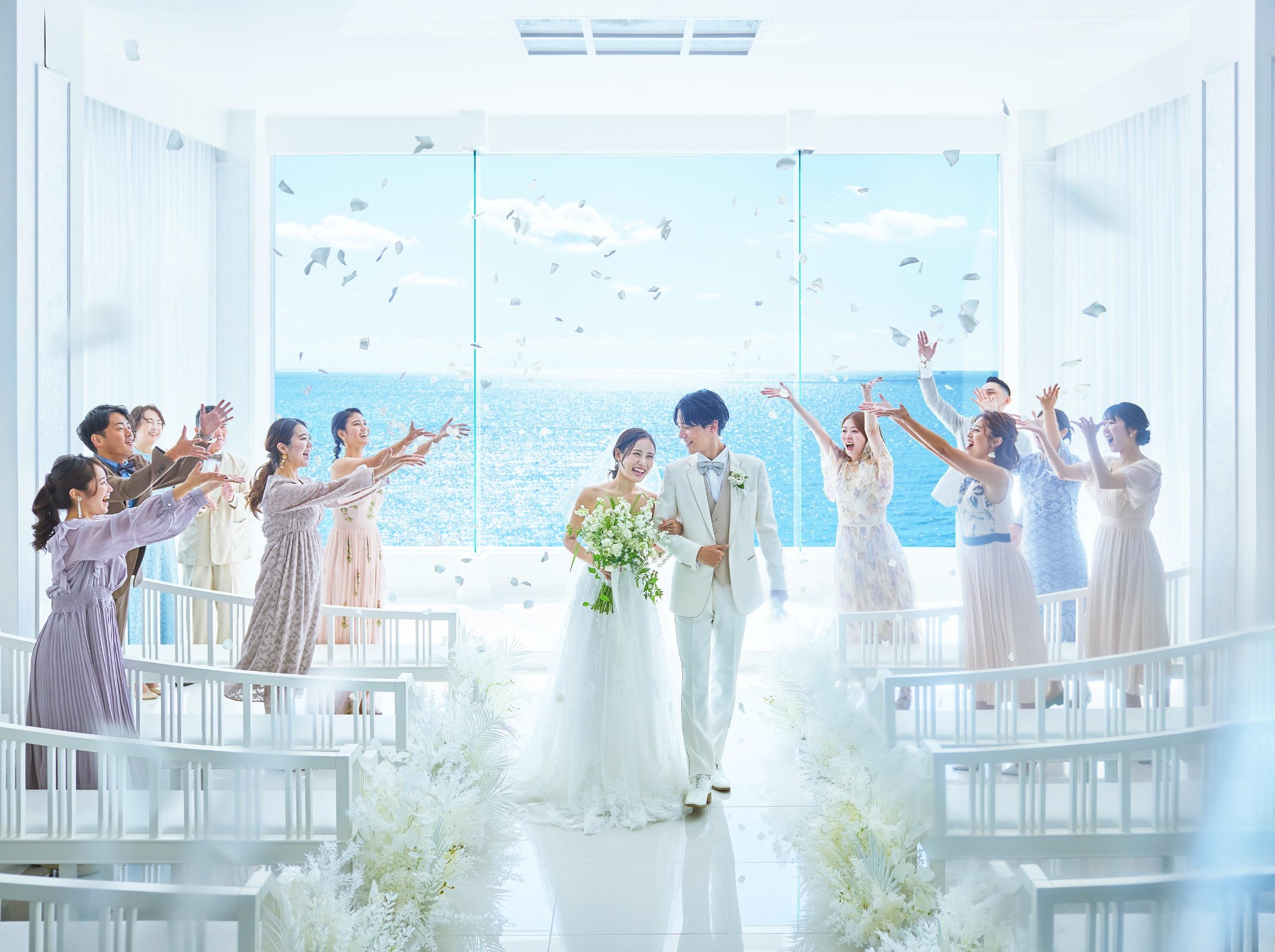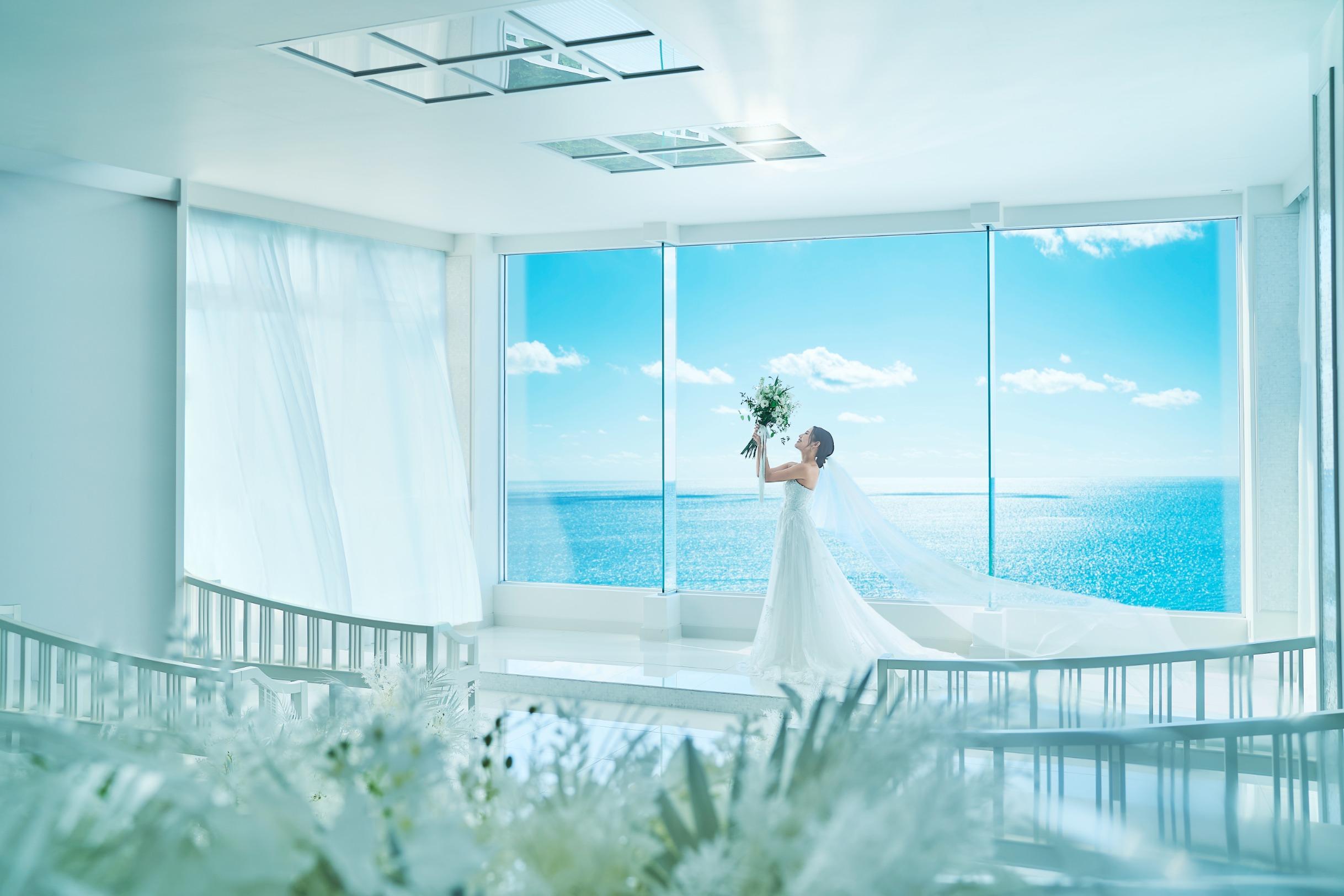 天候に左右されない全天候型リゾート施設。チャペル・パーティ会場施設が一つの建物のため、移動の負担が少なく、 海と空を感じながらテラスでケーキカットなどナチュラルで温かみのあるパーティが叶います。