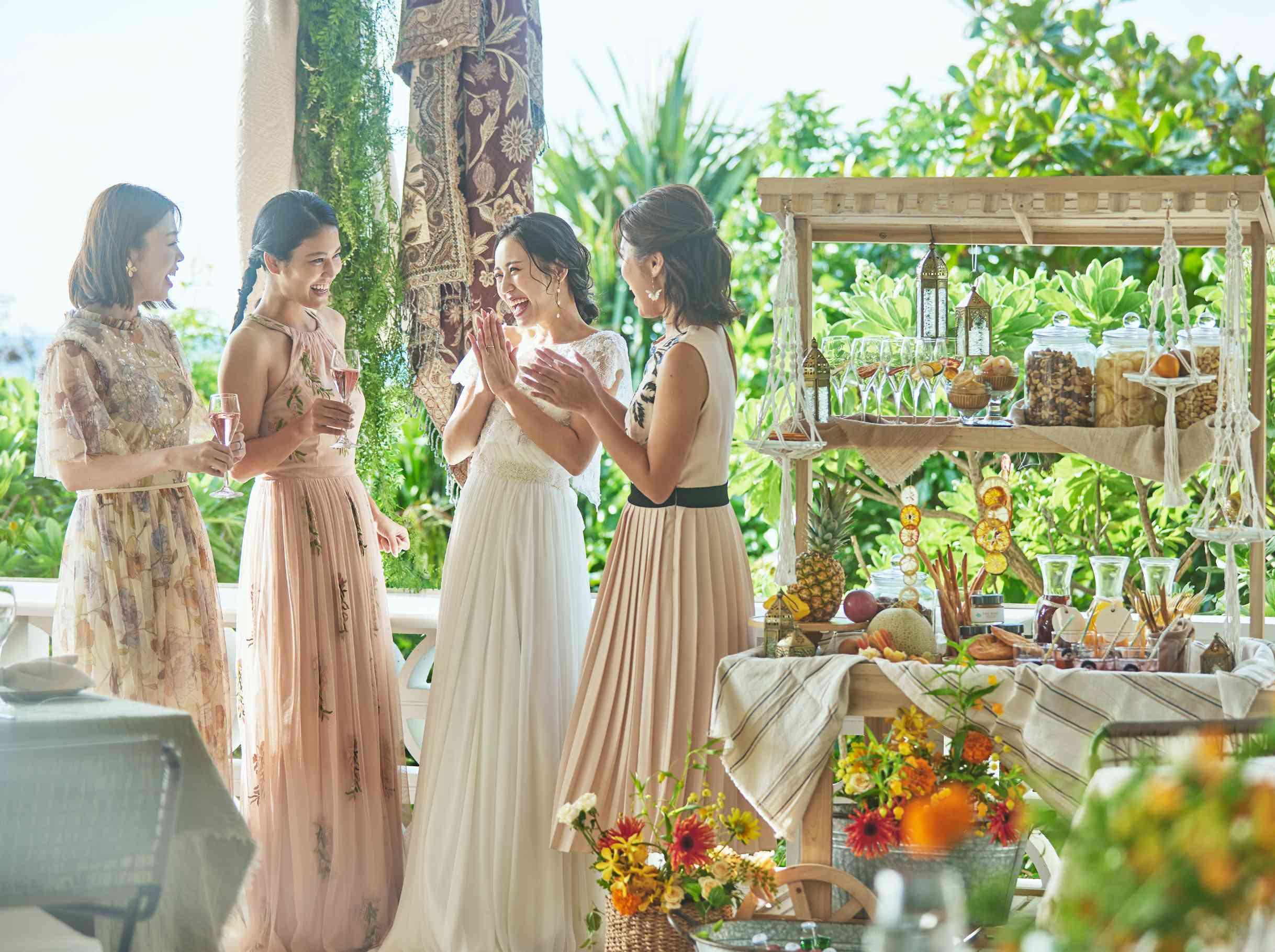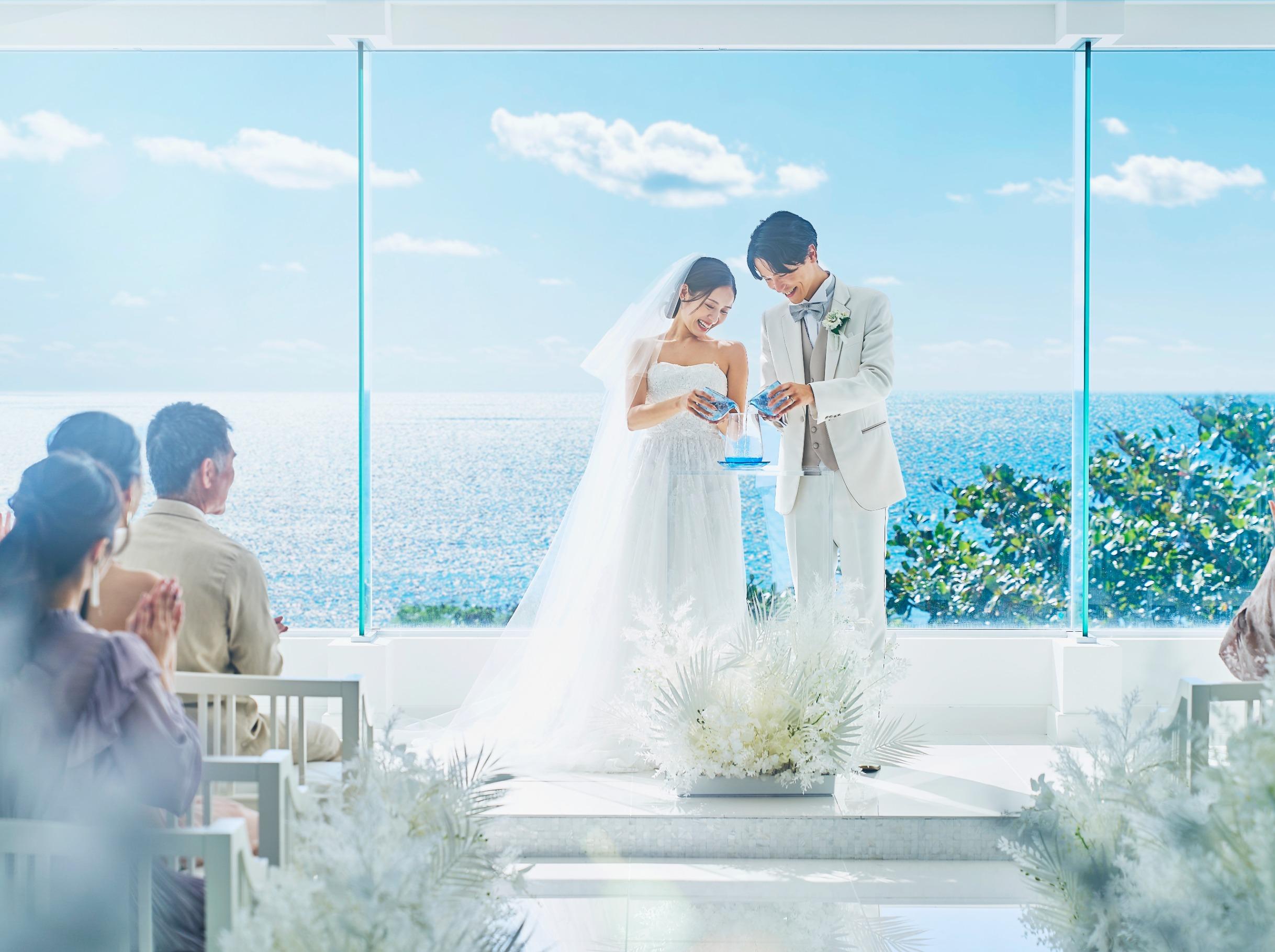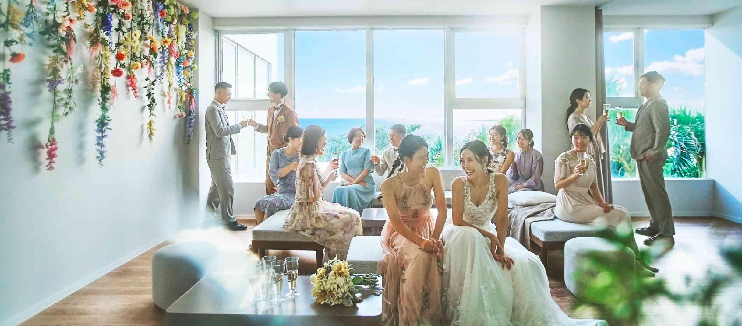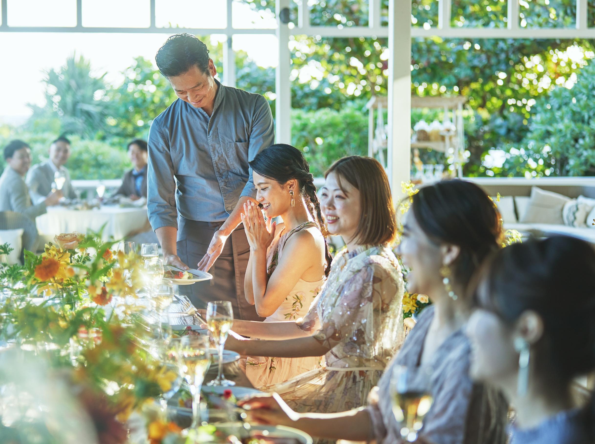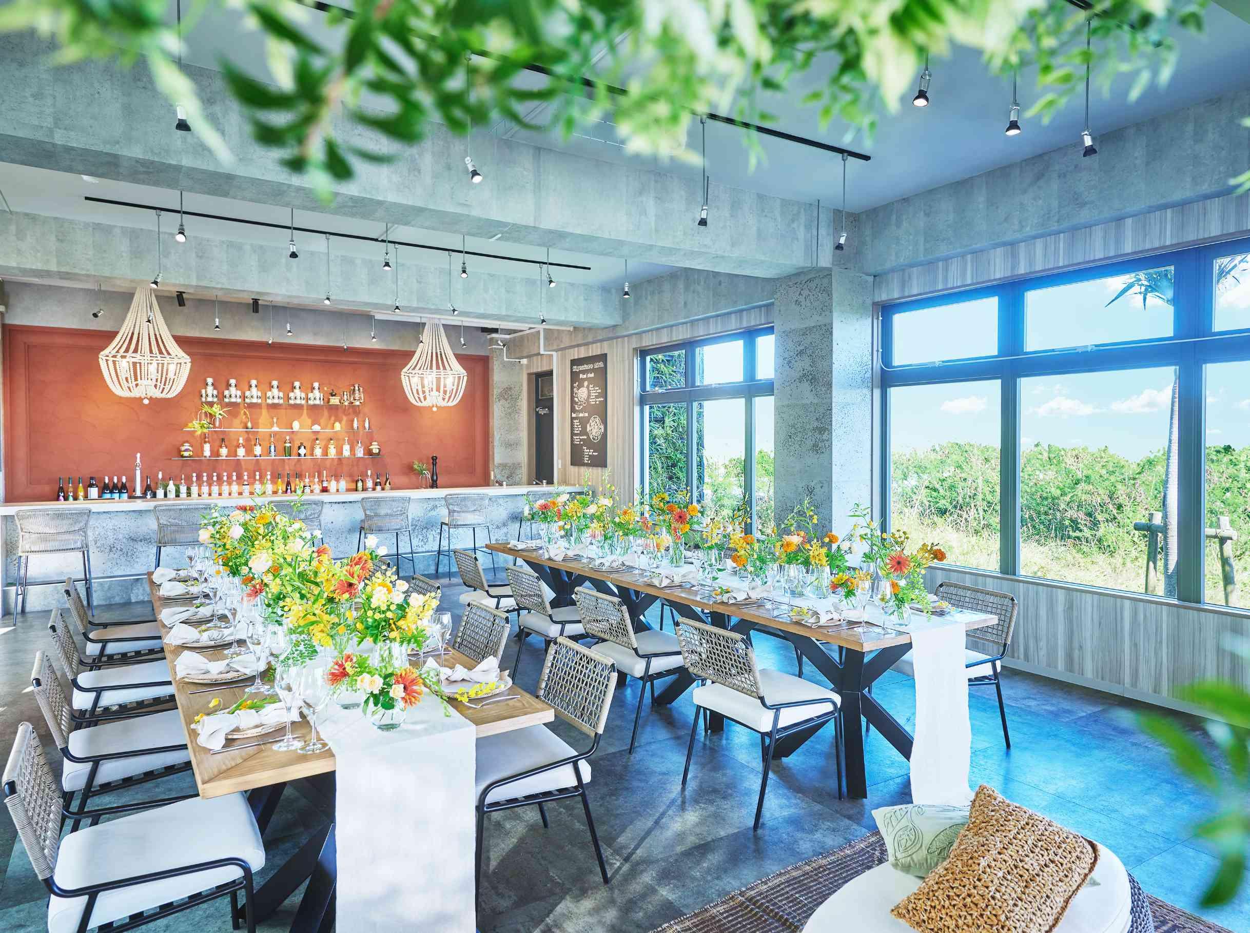 宮古島の景色を一望できる、開放的なテラス付オーシャンビューレストランを貸切って、おふたりらしいパーティを実現。大切なゲストの皆様と自然体でスローな非日常をお過ごしいただけます。