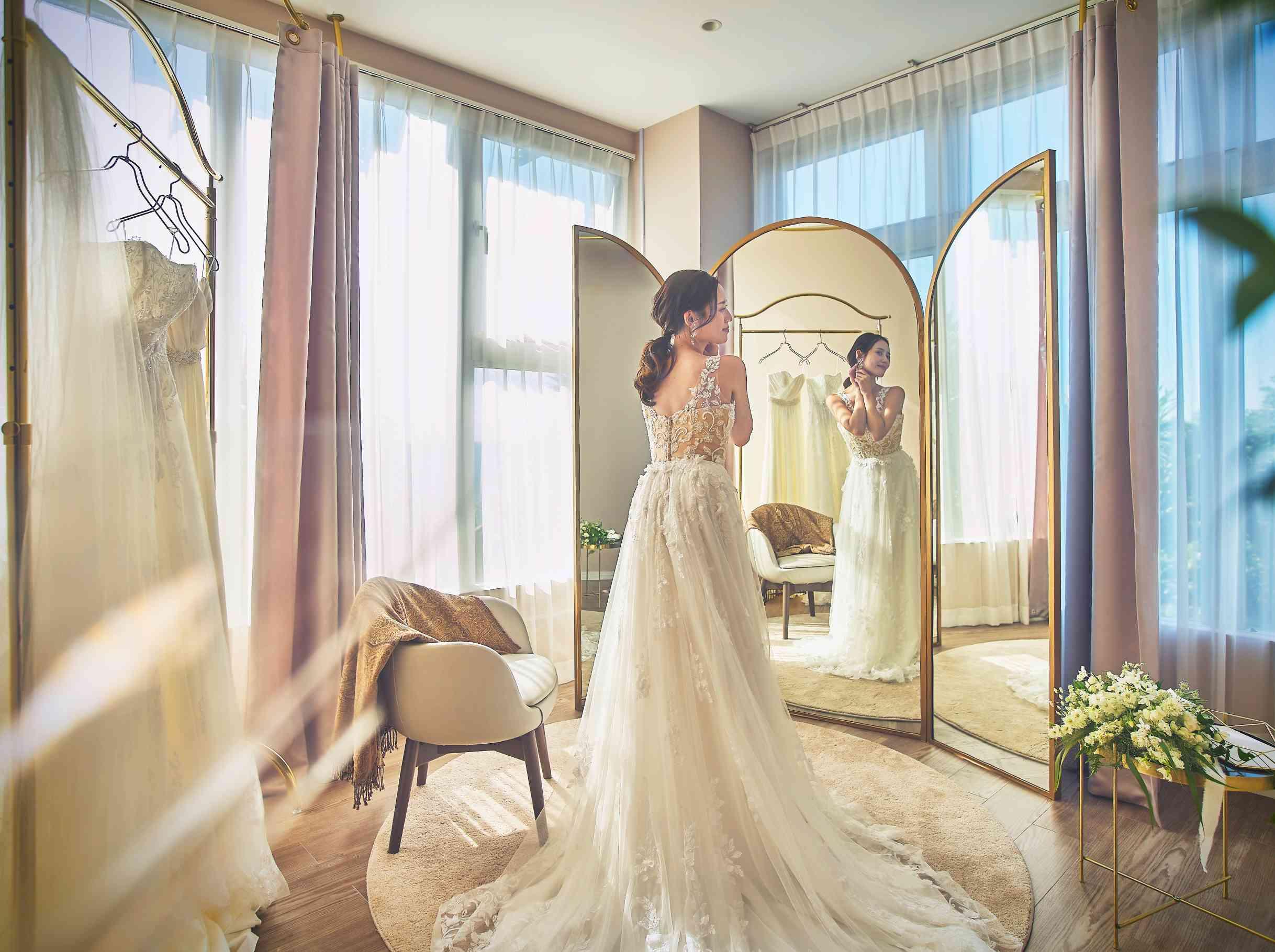 衣装提携先のFOUR SIS & COでの衣装お打合せは全国27県38施設で対象となります。プランに含まれる衣裳は追加にてアップグレード可能です。