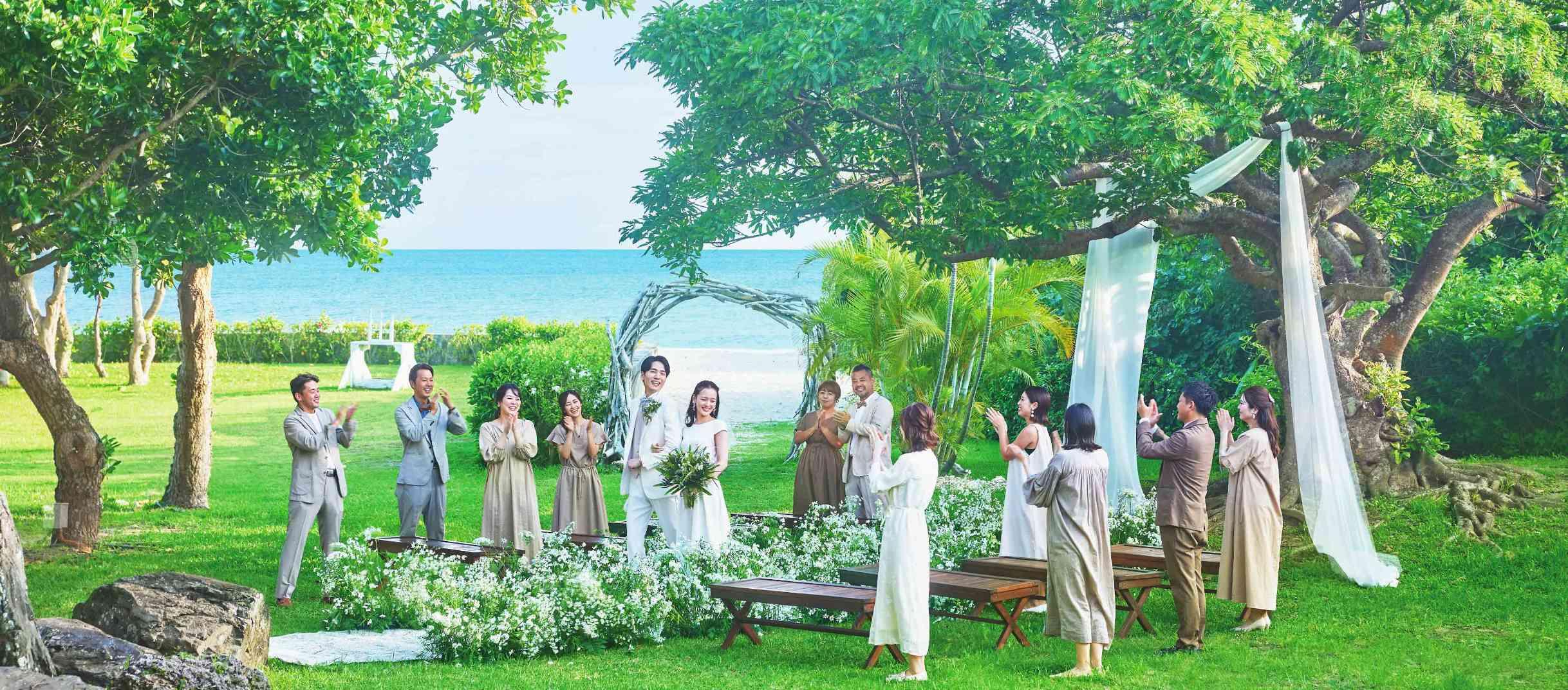 挙式は、チャペル・ビーチ・ガーデンから お好みの会場が選べ、自由度の高いアレンジで おふたりはもちろん、ご家族やゲストの方々にとっても 強く記憶に残るオリジナリティあふれるセレモニーが叶います。