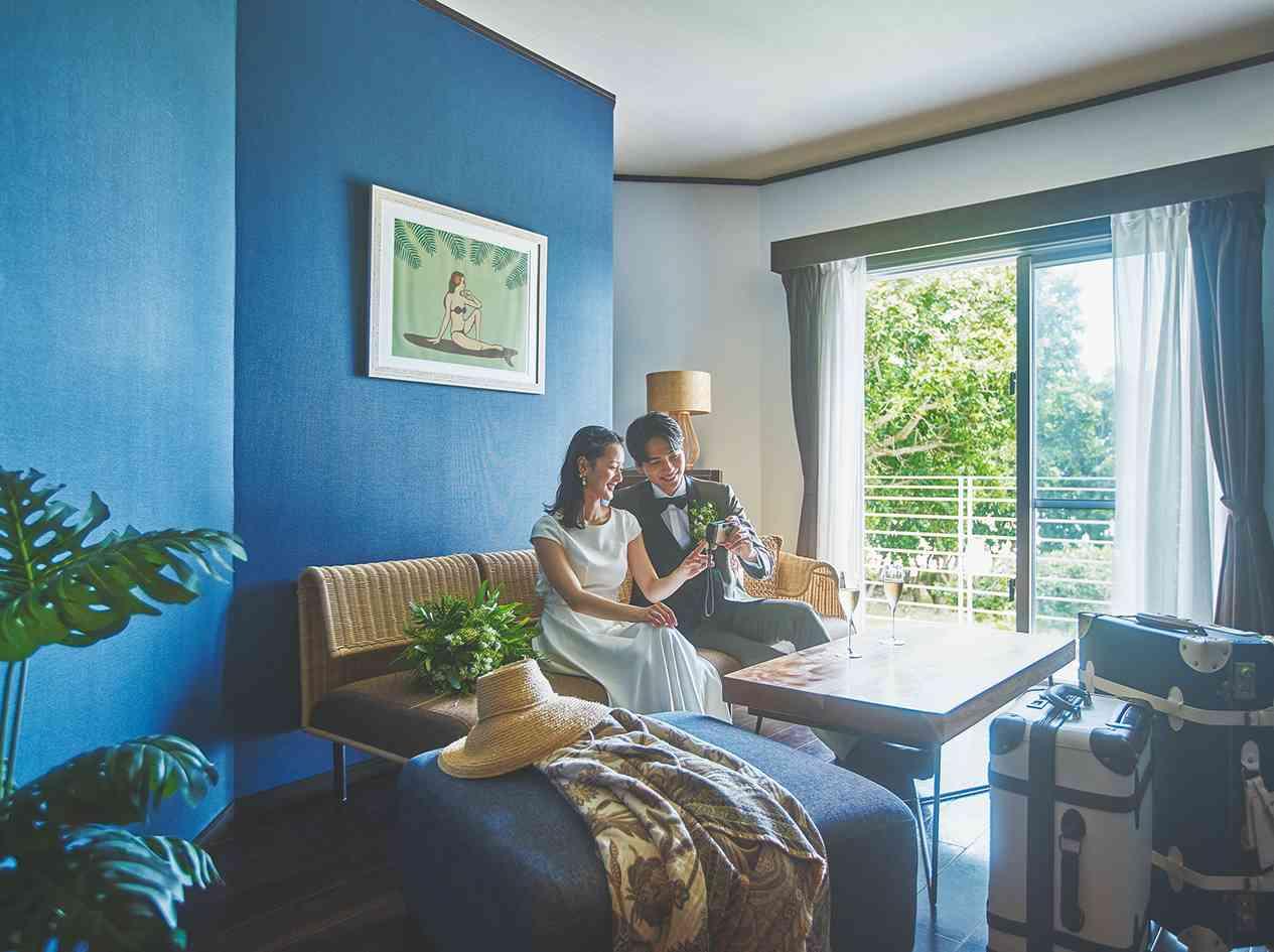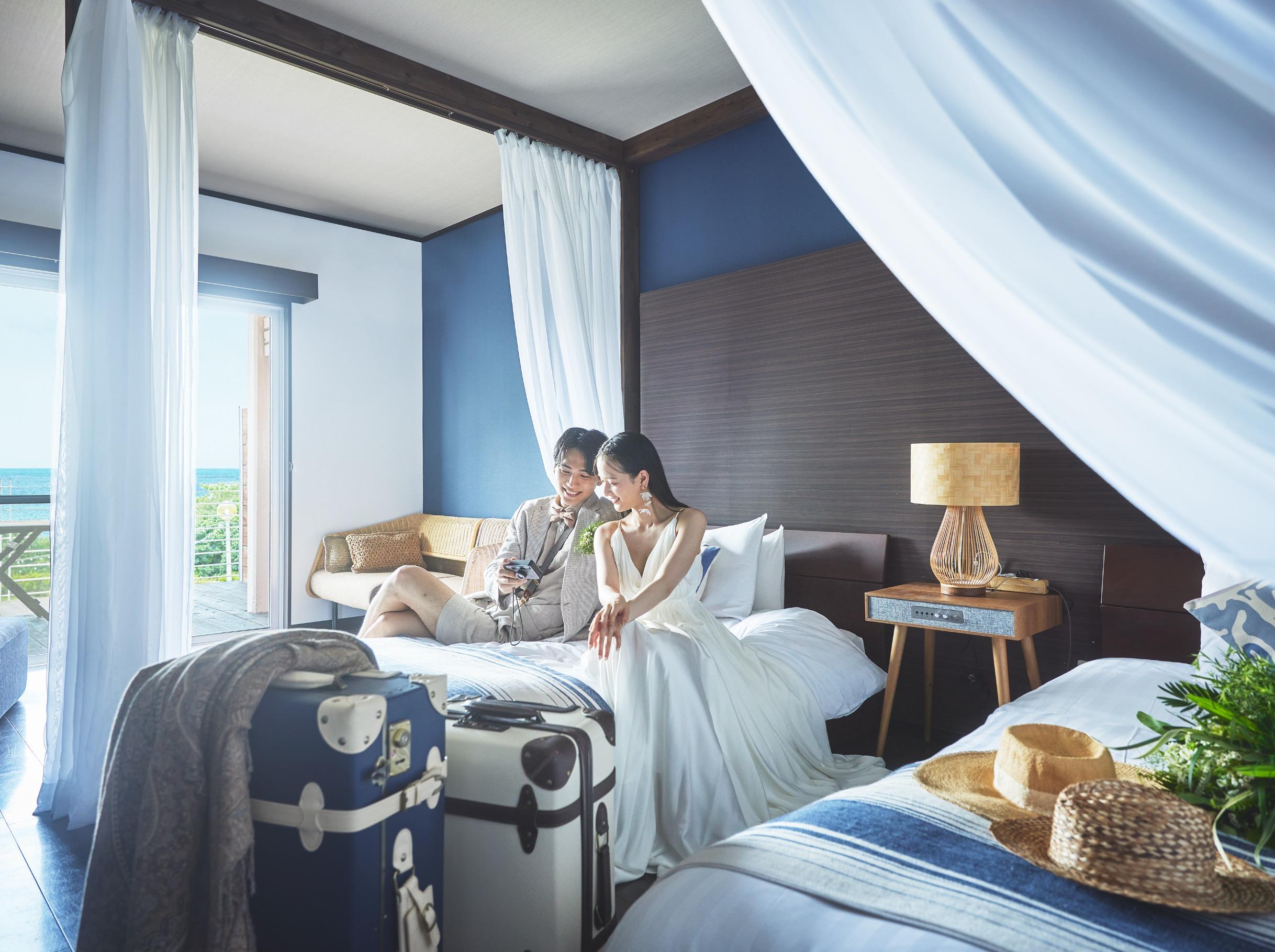 館内の中にはブライズルームがございます。客室はバルコニー付きでプライベート感を保ちながら絶景を楽しめます。