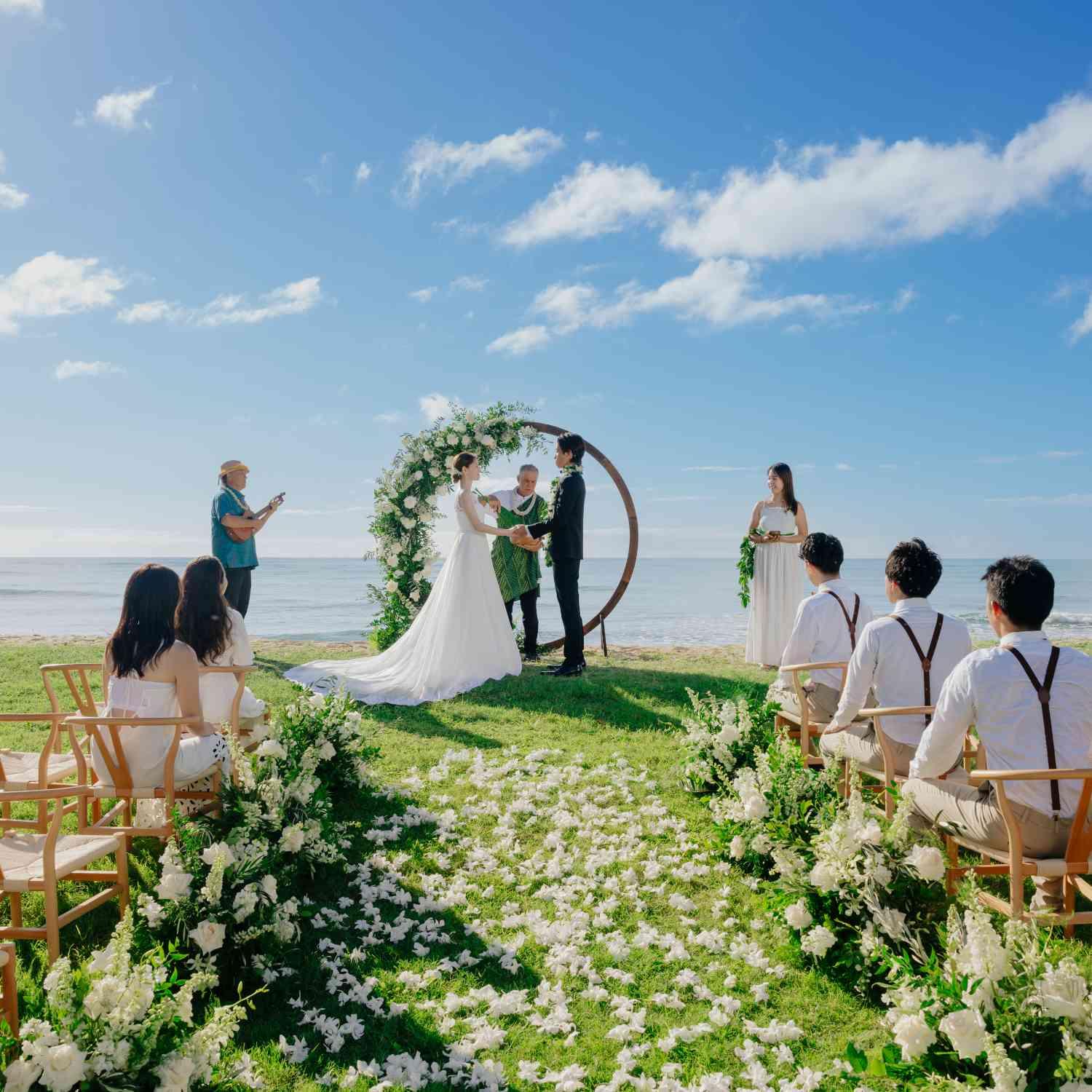 晴天率90%以上の閑静な住宅街エヴァ地区。広大なガーデンやビーチがおふたりだけの貸切プライベート空間に。ハワイ司式者カフによる古来より伝わるハワイアンスタイルの挙式は記憶の中で永遠に輝きつづけます。
