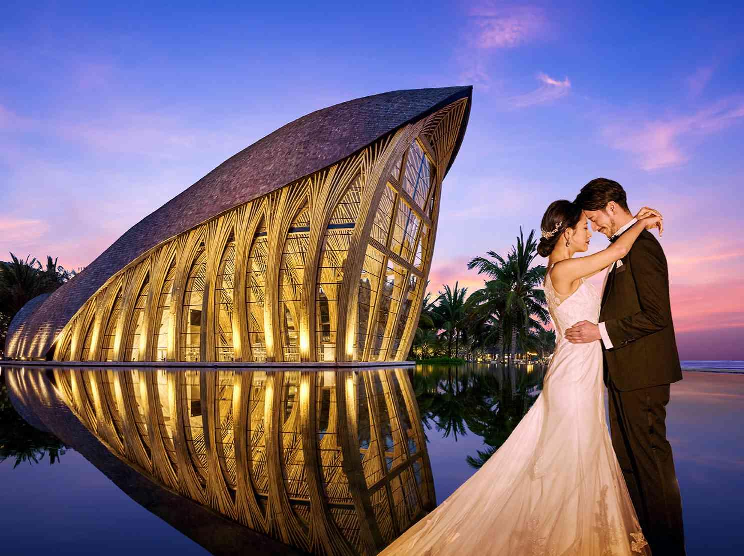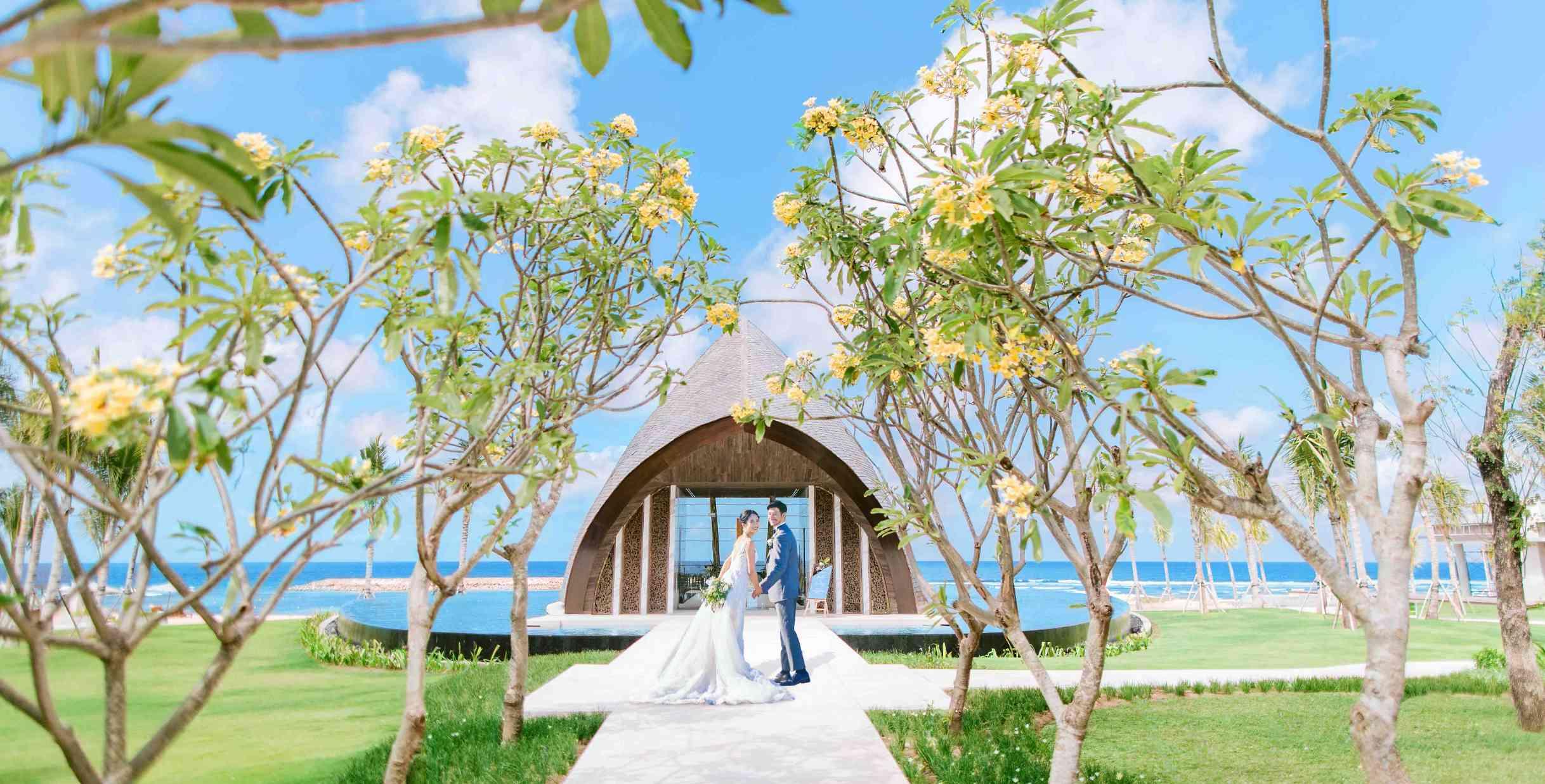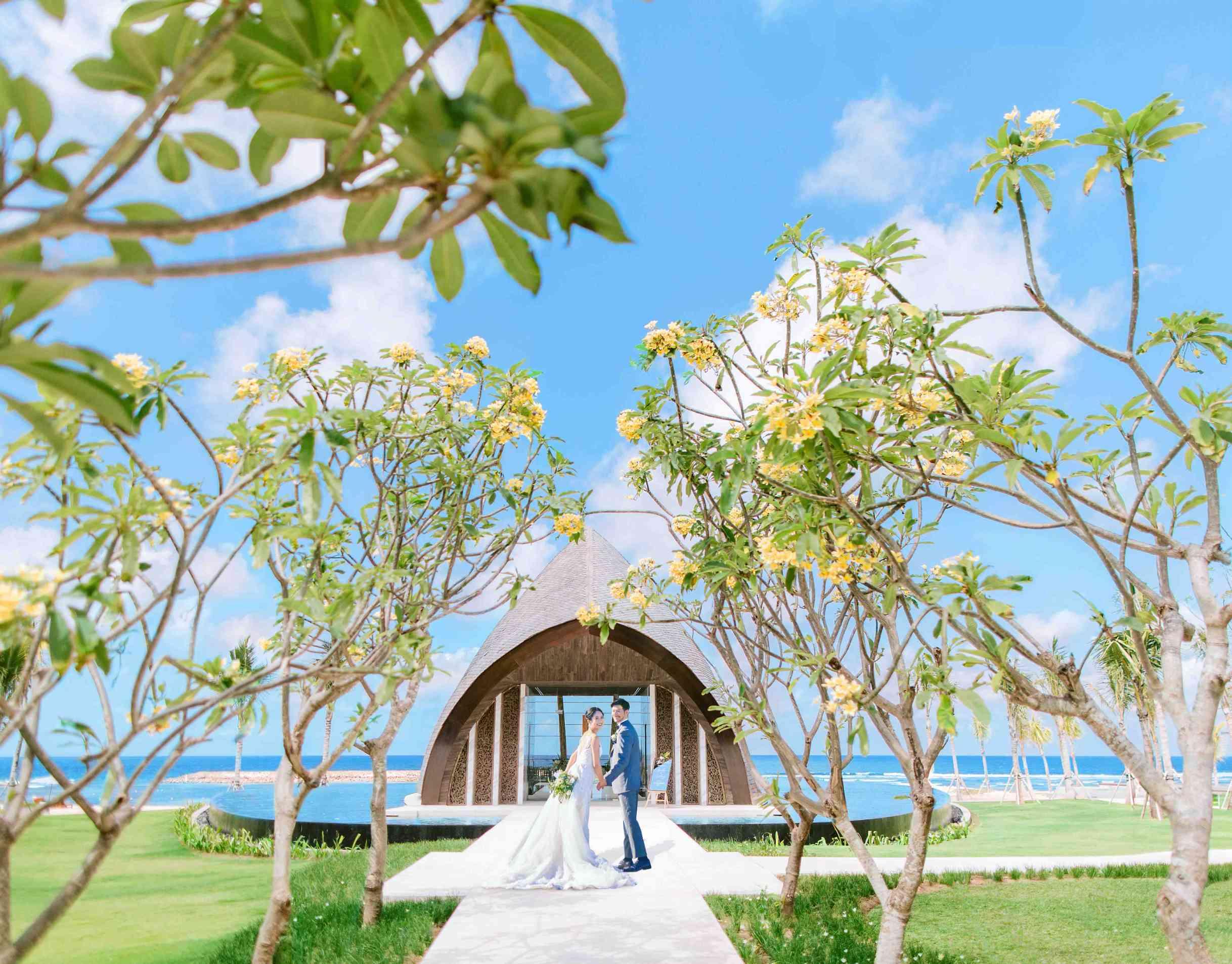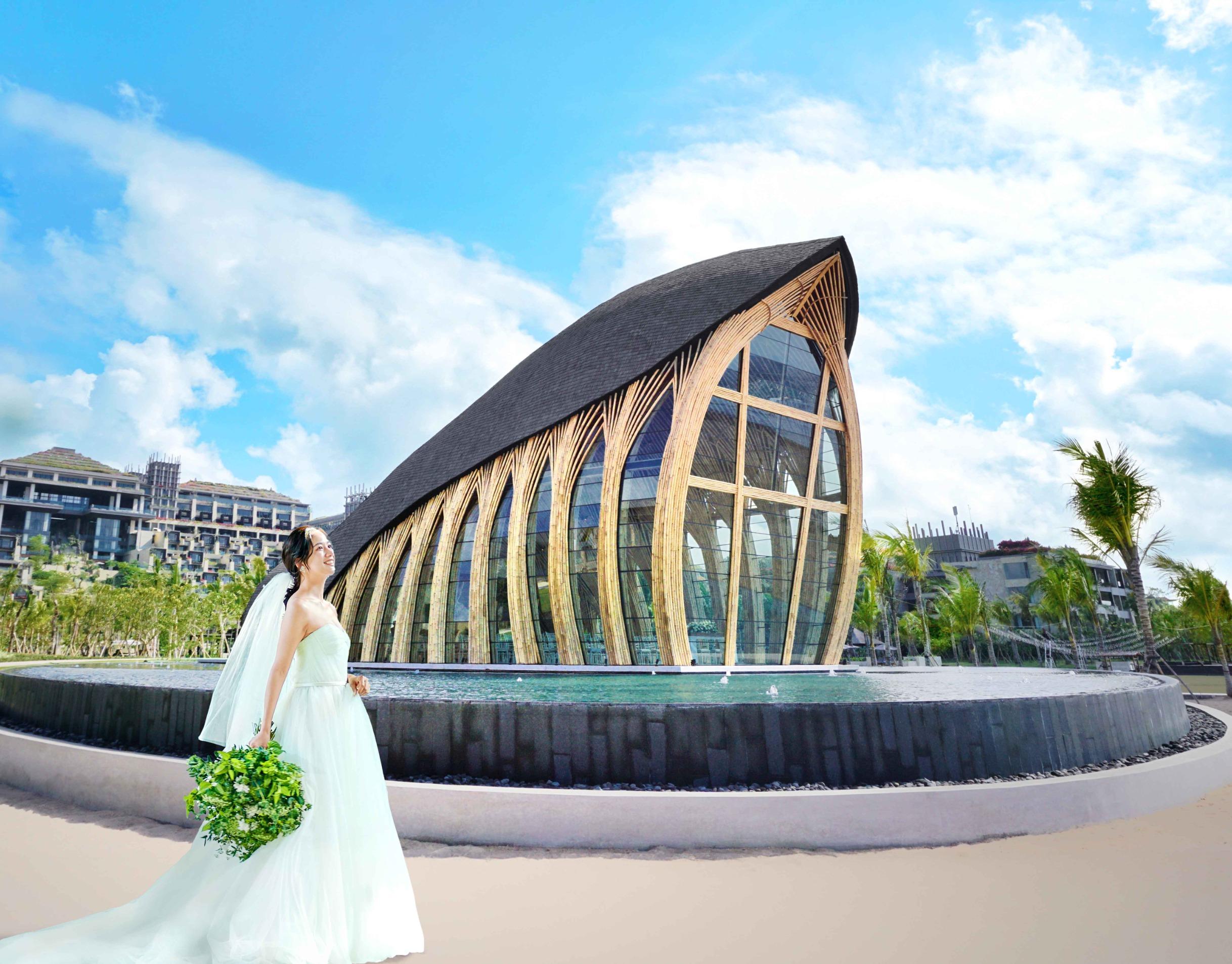 バリを象徴するここにしかないチャペル。 バリらしい竹細工で作られたきめ細やかな内装。 美しい海を目の前にプライベートな空間で、 幸せを包み込むチャペルセレモニー。