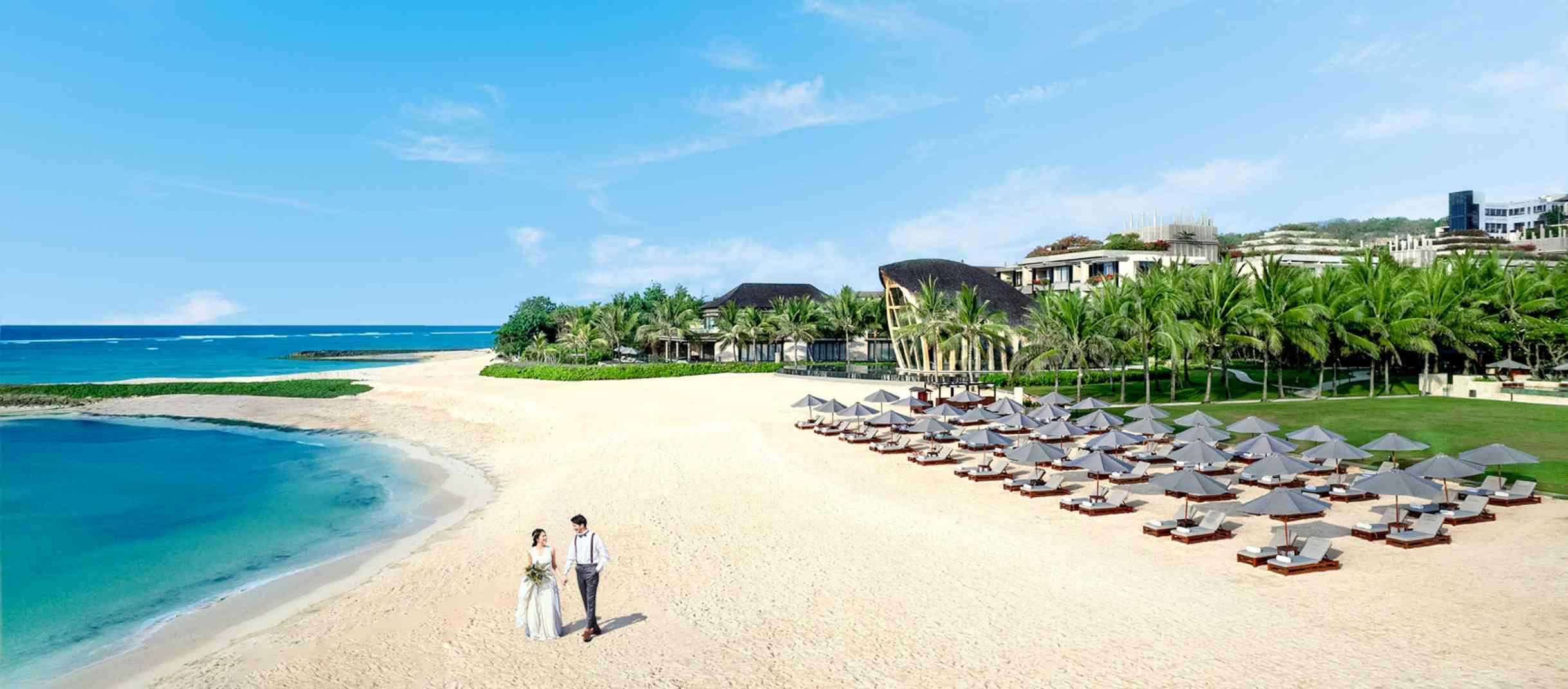 ケンピンスキーバリは、白い砂浜とターコイズブルーの海が広がるヌサドゥアビーチに面しており、理想的なビーチフロントのリゾートです。静かな環境と美しい海景色が、訪れる人々にリラックスした時間を提供します。