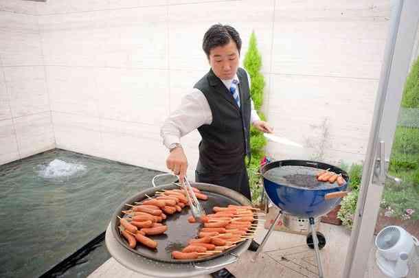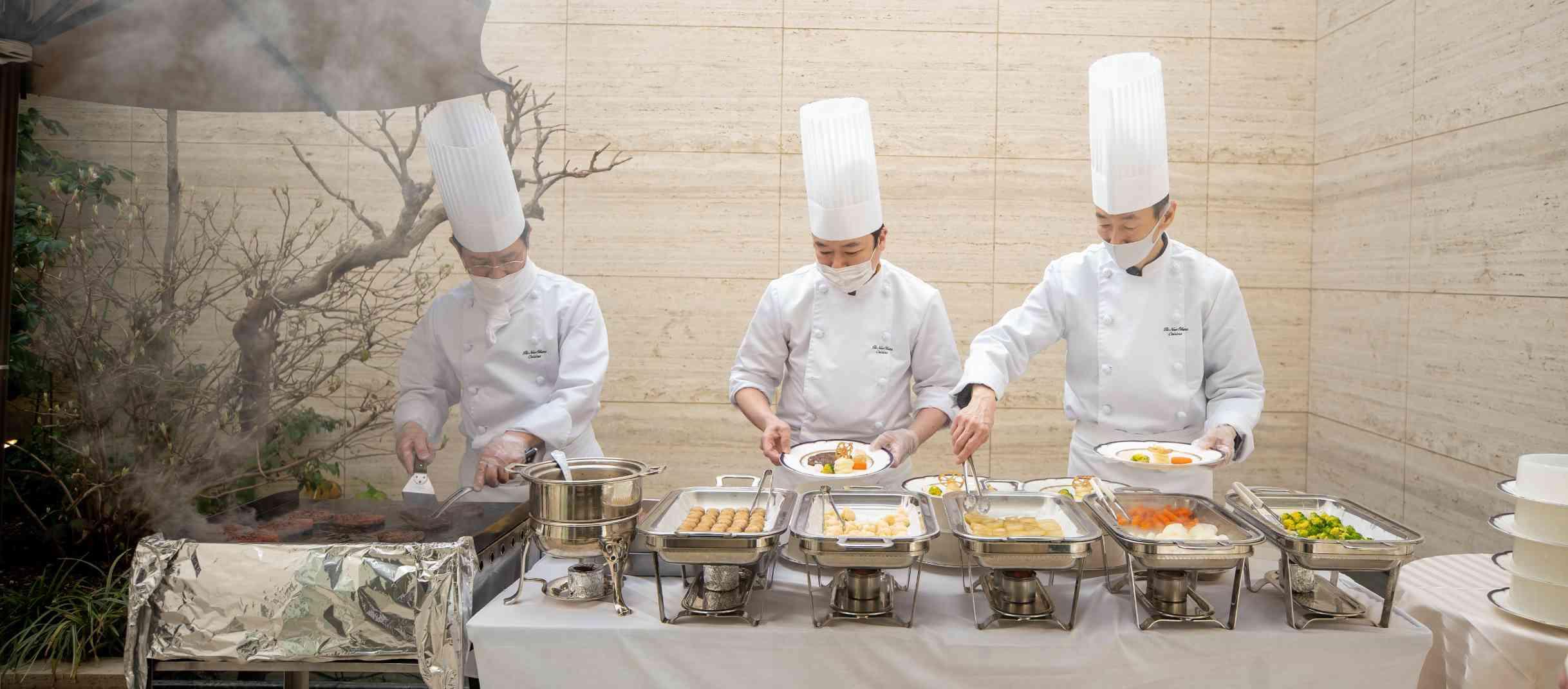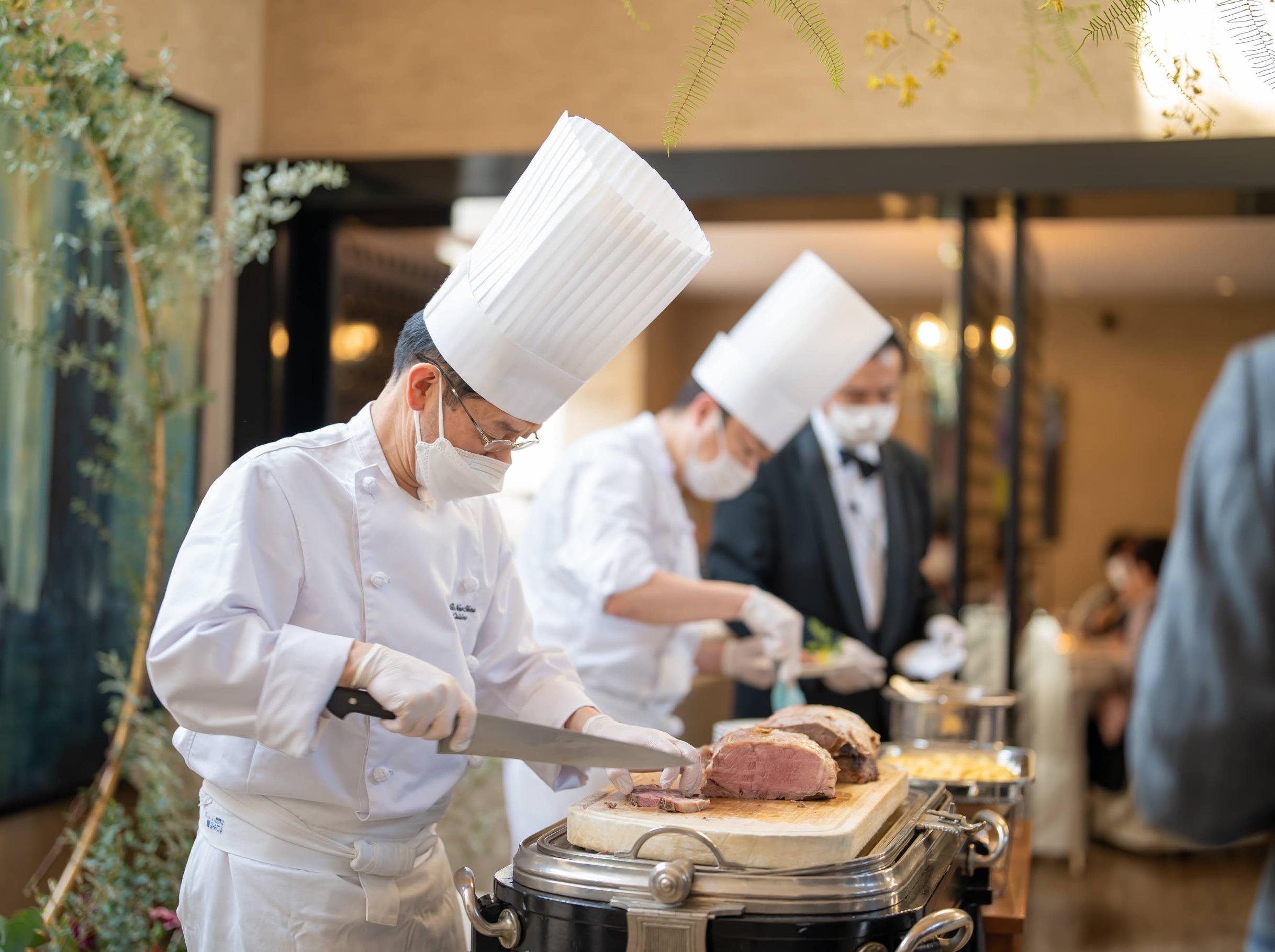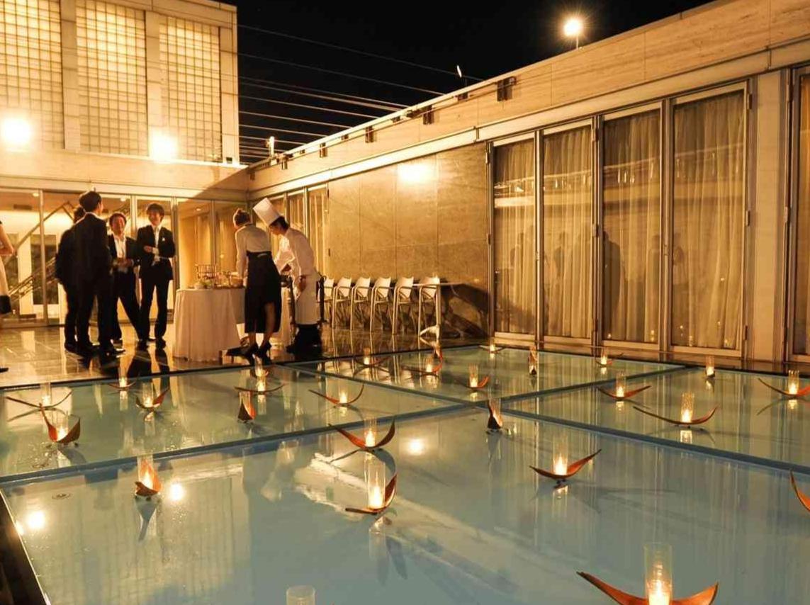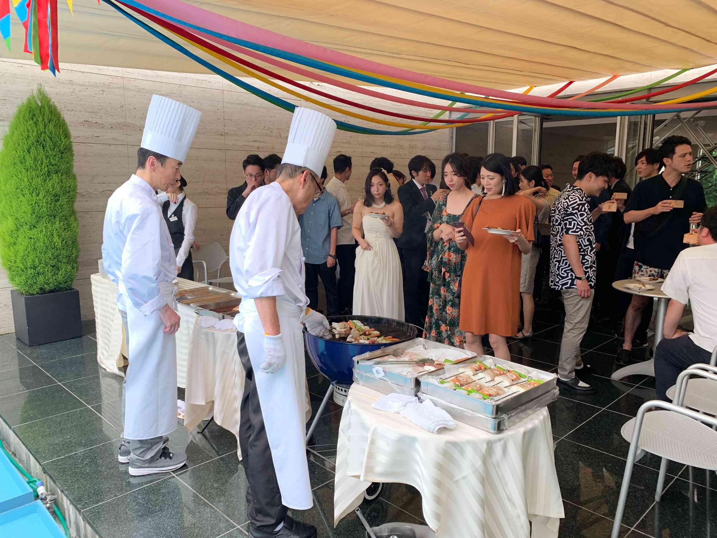 邸宅内ではメインスペースだけでなく、1階テラス・2階テラスなどでも料理のご用意が可能です。シェフを招いてゲストの前で鉄板焼き・ウェルカムパーティとしてテラスでBBQ、寿司職人を招いた江戸前握りずしなど