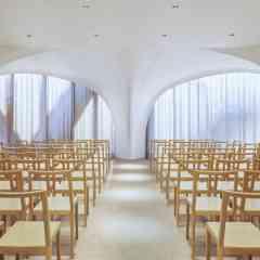 「Celebration Hall(セレブレーションホール)」 特別な場所でありながら安心感を与える安らぎに満ちた空間です。すべての人が心地よいと感じる建築とは何かを追求して設計された挙式会場をご体感ください。
