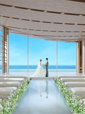 "駿河湾と富士山"の絶景を一望!唯一無二の自然美の中で誓う挙式はおふたりとゲストの中に永遠に刻まれます。息をのむほど美しい壮大なオーシャンビューが広がります。