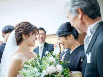 大事な一日の始まりは今まで一緒に沢山の思い出を過ごした家族との対面式で。扉が開いた瞬間に目に飛び込んでくる涙ぐむ家族の表情でよみがえる幼い頃の思い出ともらった愛情の数々。大切な一日だからこそ、家族との時間もしっかり過ごしていただく大切なお時間【ペアレントタイム】を御用意しております