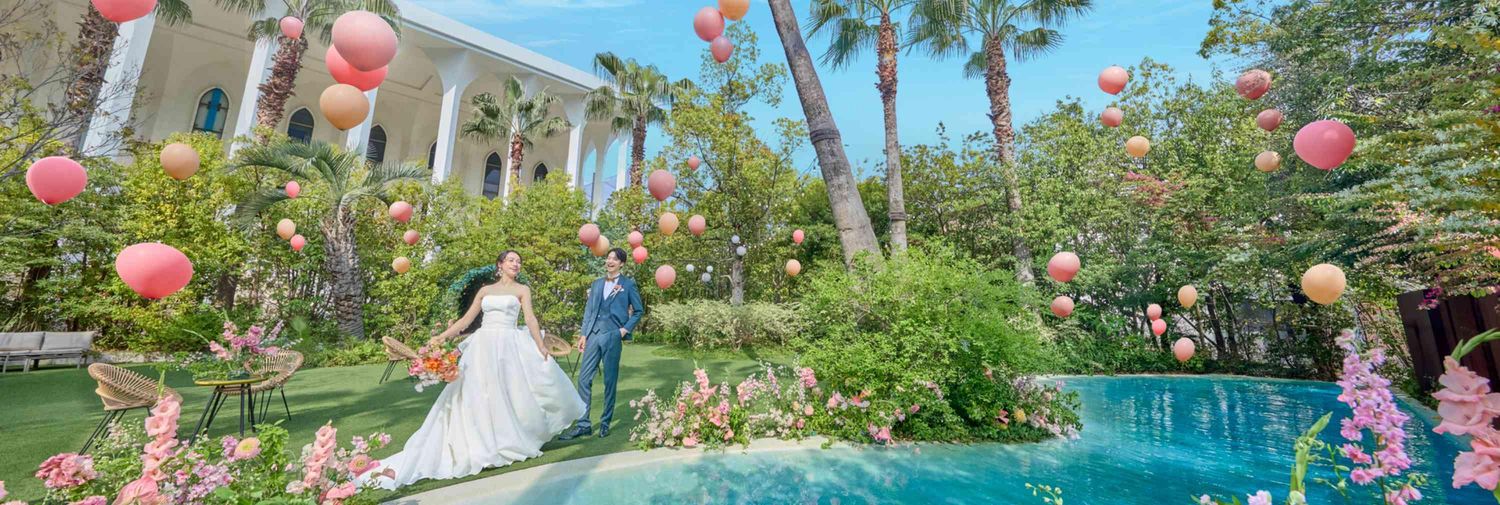 四季折々の植物が季節でカタチを変え、緑を感じられるガーデン お2人様とゲストの皆様を特別な空間へご案内します オールシーズンに合わせた最幸のプライベート空間