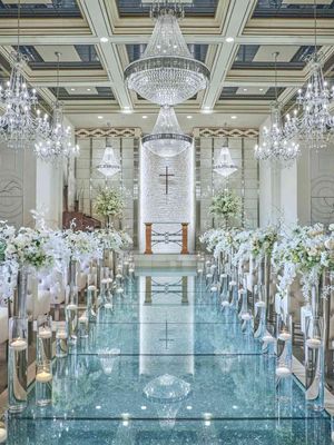 光り輝くクリスタルがちりばめられた まばゆいほど美しく清楚な クリスタルチャペル プリマルーチェ 特別な空間を大切なゲストと共に過ごす空間