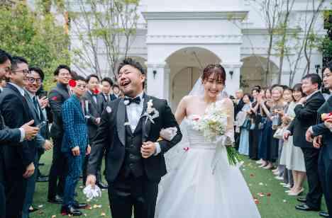 挙式ではアットホームな雰囲気をご希望され人前式を選ばれました 誓いの言葉もオリジナルな文面でご用意され、ゲスト全員が立会人になっていただき愛を誓われました アフターセレモニーでは沢山のご友人様とフォトタイムで過ごしていただき新郎様からのブロッコリートスでは争奪戦となりゲスト全員が盛り上がる演出となりました