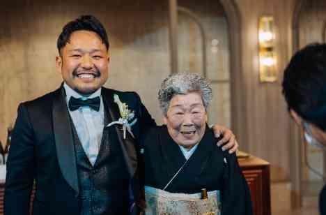 お色直し退席時に新郎様が大好きなおばあちゃんと退席しました 小学生の時に野球をしていた新郎様 いつも試合の時には応援に来てくれたり、お菓子を買ってくれたりたくさんの思い出があったそうです 元気なうちに晴れ姿を見て欲しい希望があり大好きなおばあちゃんと楽しく退席となりました 退席後にはお二人とも涙をされ素敵な演出となりました
