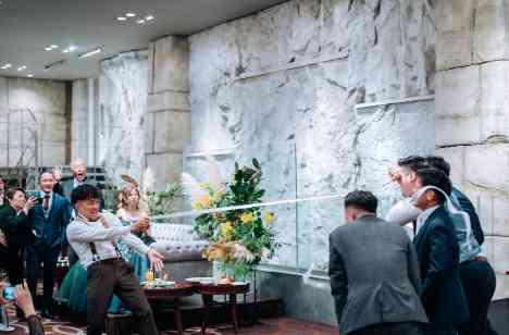 新郎新婦様はご披露宴も僕たち私らしくアットホームで皆様に楽しんでいただく披露宴を作っていただきました。 新郎様のご要望で男性ゲストにトーナメント式でゴムパッチンを行いたいとお伺いし行っていただきました。 ゲストの皆様は楽しい中ハラハラドキドキしてるご友人様を見て楽しむ新郎新婦様。ゲストの皆様も笑いの渦で皆様楽しい2時間30分を楽しんでいただきました。