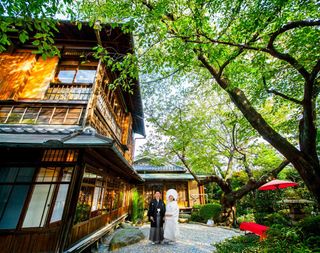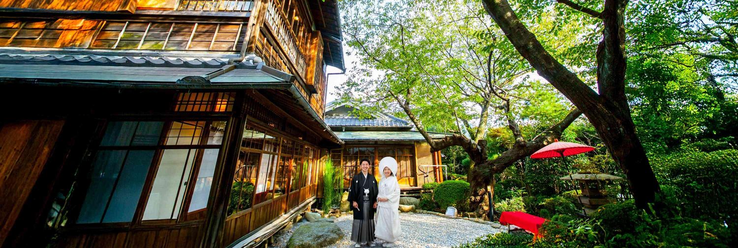 英国実業家ハンター氏が、愛する妻のために築いた美しい庭のある「日本家屋建築」が結婚式の舞台。非日常な空間なのに、どこか懐かしく、まるで実家に帰るような安心感がある場所。あたたかい夫婦のはじまりの一日に