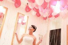 お化粧室にはバルーンの装飾で全く異なる雰囲気に!貸切邸宅ならではの演出。天井を埋め尽くすバルーンでサプライズをご提案しました。お化粧室でも写真撮影が盛り上がっていました。