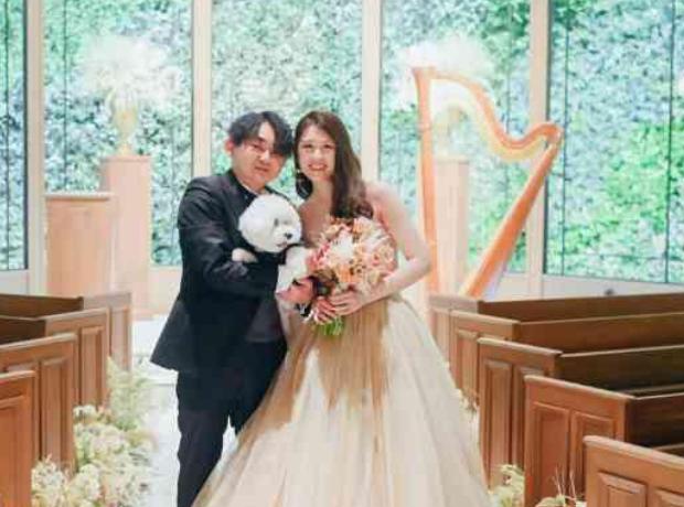 お二人が買っている愛犬も結婚式当日参加してほしい!とご見学の時からご希望でした♪ そのためワンちゃんも当日さみしい思いをしないように、披露宴会場に3人で一緒に登場したり、披露宴中は二人のそばにゲージを置きゲストの方に遊んでもらいながら新郎新婦様+ワンちゃんにも楽しんでもらえるように一緒に素敵な時間になるように考えました!