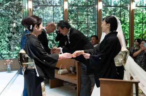 親御様に誓う挙式と書き、親誓式(しんせいしき)を行いました。大切なゲストの方々が多いお二人でしたが、やっぱり一番大事なのは親御様ということで親御様に挙式に参加してもらいました! 新郎新婦様ともに3人で入場してもらい、その後親御様同士で握手を交わしてもらいました。親御様にご参加いただいたので、とても和やかな挙式となりました!
