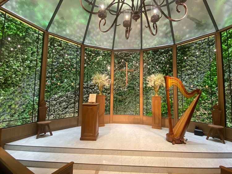 チャペルが想像以上に綺麗で落ちついており、とても好みだった。明るすぎず、暗めなところもちょうど良い。