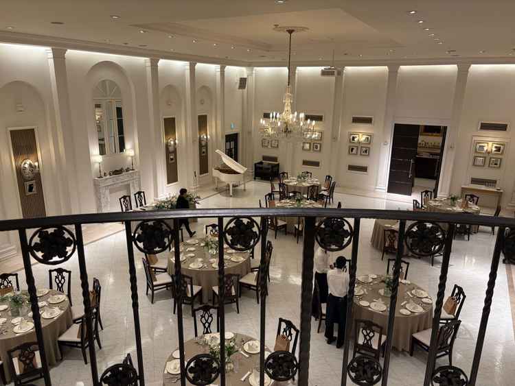 ガーデンとチャペルが緑が多く、ナチュラル。披露宴会場は階段があり、白ベースで王道だが、アレンジ次第で好きなテイストにできそう。おしゃれにはならない。