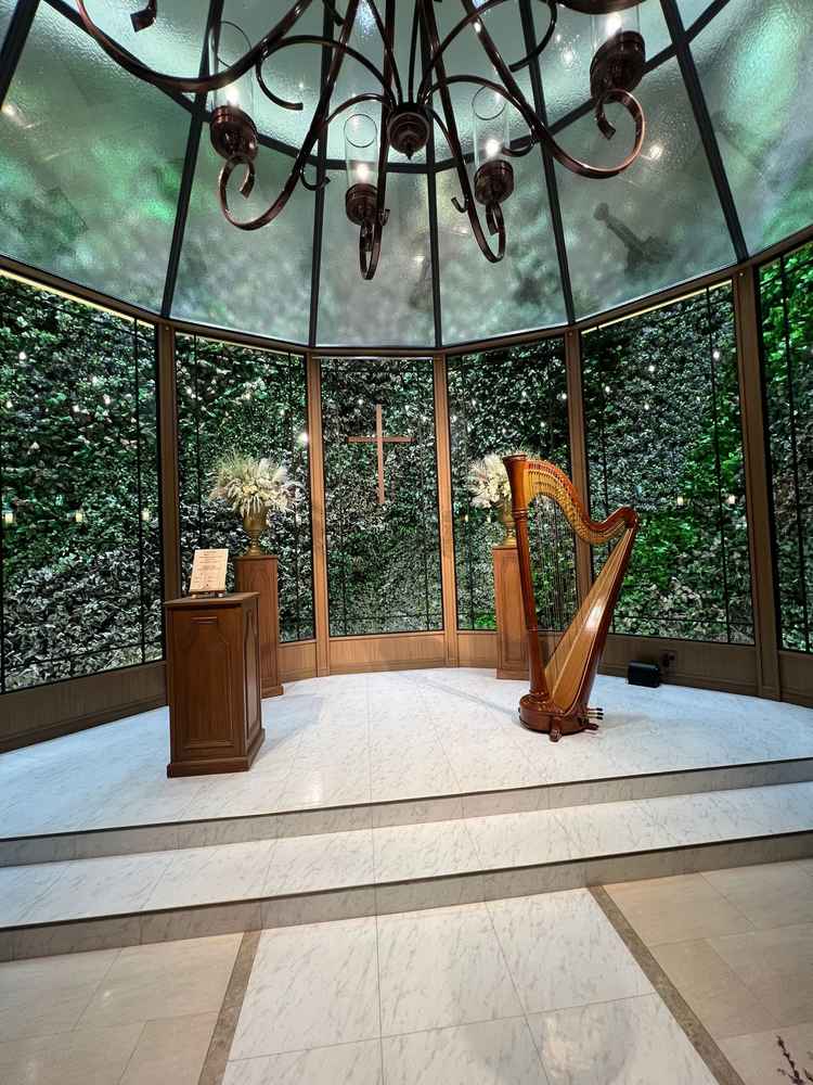 プールが想像より小さかった感じはしたが、全体的に綺麗だった。森のチャペルは造花感あったが、周りも静かでよかった。