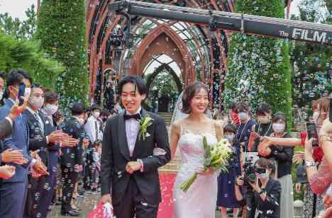学生時代にふたりがプロジェクトで創り上げた理想の結婚式。当時の仲間も見守るなかで迎えた本当の結婚式では「理想通り」だった高級感のあるガラスのチャペルと、披露宴会場"THE CLUB Fuji"で。愛犬「こはる」と一緒の人前式や、こだわりの装飾・演出が、ゲストもふたりも笑顔あふれる空間を生み出し、理想をカタチにすることができました。