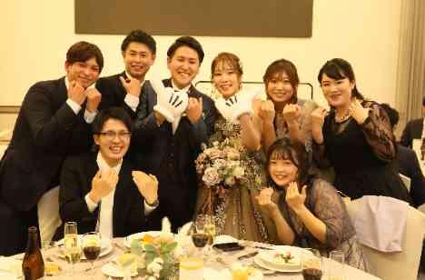 「来てくれたみんなと話す時間が欲しい」との思いで余興は無しに。選んだ披露宴会場の華厳は距離を保ちながらたくさんのゲストを呼びたいふたりにはぴったりの広々とした会場。メインテーブルには常にふたりを祝福するゲストの笑顔があふれていました。ふたりとゲストの間だけではなく、ゲスト同士でも久しぶりの集まりで盛り上がっていたようで、ふたりを中心に楽しい空気が連鎖していくアットホームなパーティーとなりました。