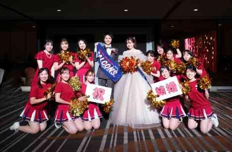 ゲストに新鮮さとワクワクを感じてもらえるたくさんの演出を用意。 会場の中央に置いたウエディングケーキでは、ケーキカットとファーストバイトのセレモニーの後に、サプライズでサンクスバイトを。 お色直し後の再入場時には、カラードレスに合わせた小物の色当てクイズを実施。余興ではダイナミックなチアリーディングのパフォーマンスを披露。 まるでテーマパークに遊びに来たような、楽しいパーティーになりました。