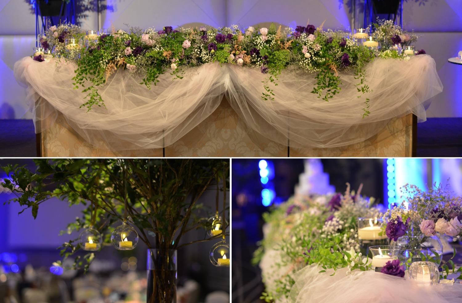 これまでに参加してきた結婚式での経験を活かし、細かい部分にも気を配ったコーディネートを心がけたおふたり。披露宴では、場面場面で照明のテイストを変え、上質・豪華でみんなが楽しめる時間となるようなこだわりが詰まっています♪