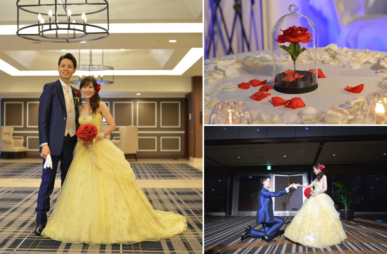 一目ぼれしたイエローのカラードレスに合わせて、披露宴会場の世界観をコーディネート。広々とした会場ならではの煌びやかなライティングを浴びながらの再入場は、まさに舞踏会のようでした★