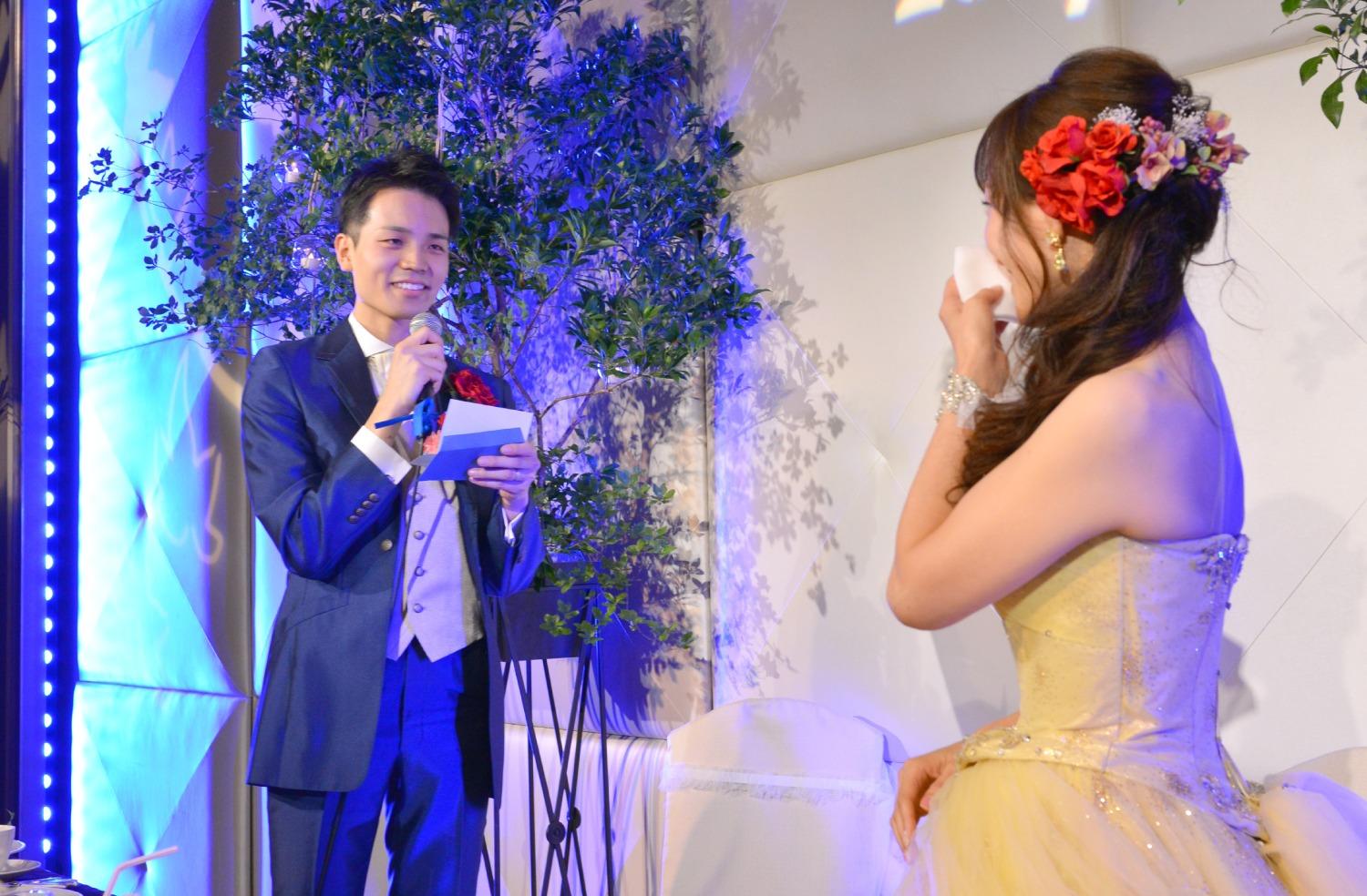 披露宴の終盤に、新郎からのサプライズ!「僕と結婚してくれてありがとう。」との手紙に思わず涙・・・。突然で驚きましたが、とても嬉しい時間となりました。