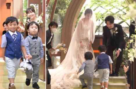 元々は都内や軽井沢の会場を検討していたふたりですが、遠方からのアクセスも良く、独立型チャペルで緑に囲まれた「ガラスのチャペル」と、プライベートのある感ゲストハウス型会場の「アリアンナ」、そしてなによりもふたりが出逢った思い出の場所でもあるシェラトン ホテルが最終的にふたりの誓いの場となりました。挙式には可愛い甥っ子のリングボーイも登場!