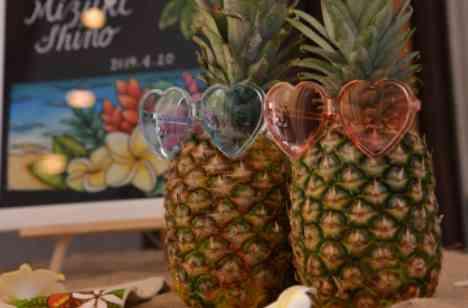 ふたりが決めたテーマに合わせて、披露宴会場内も南国リゾート風にコーディネート♪ 普段は自宅に飾っているインテリアも装飾に取り入れながら、ゲストの皆様にもリゾートを感じていただけるコーディネートに仕上げました♪