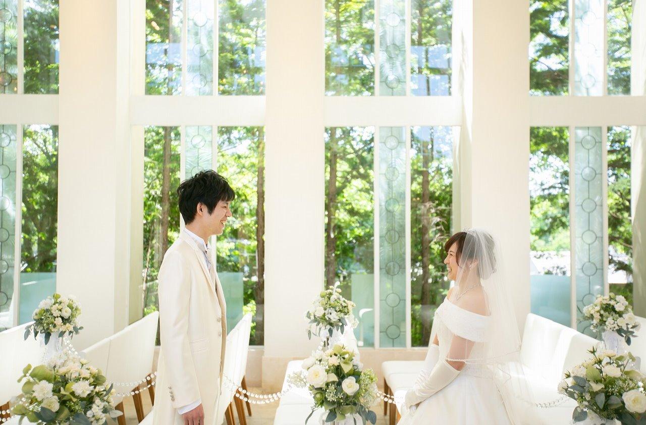 挙式前の緊張の中、チャペルの中でファーストミートのシーンがありました。当日まで装を内緒にしていたおふたり。新郎様の背後から肩をトンと叩いてみると一度ニコっと笑った新郎様。振り返ると少し照れくさそうな、でも満面の笑みで向き合うふたりには素敵な時間が流れていました!挙式では、両家のお父様に承認の代表サインをしてもらったり、お母様へのRose to motherの演出を行ったりとてもあたたかい挙式でした
