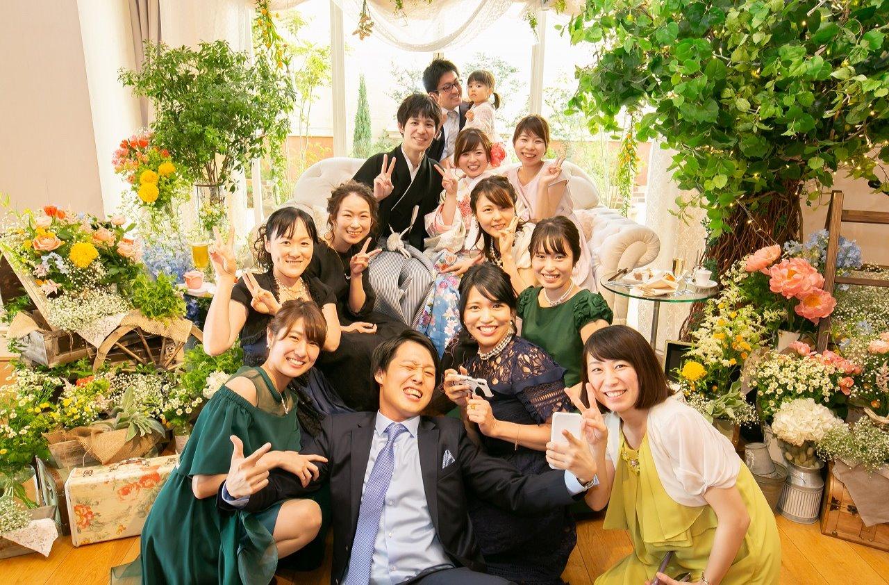 お花とゲストに囲まれたガーデンウェディン