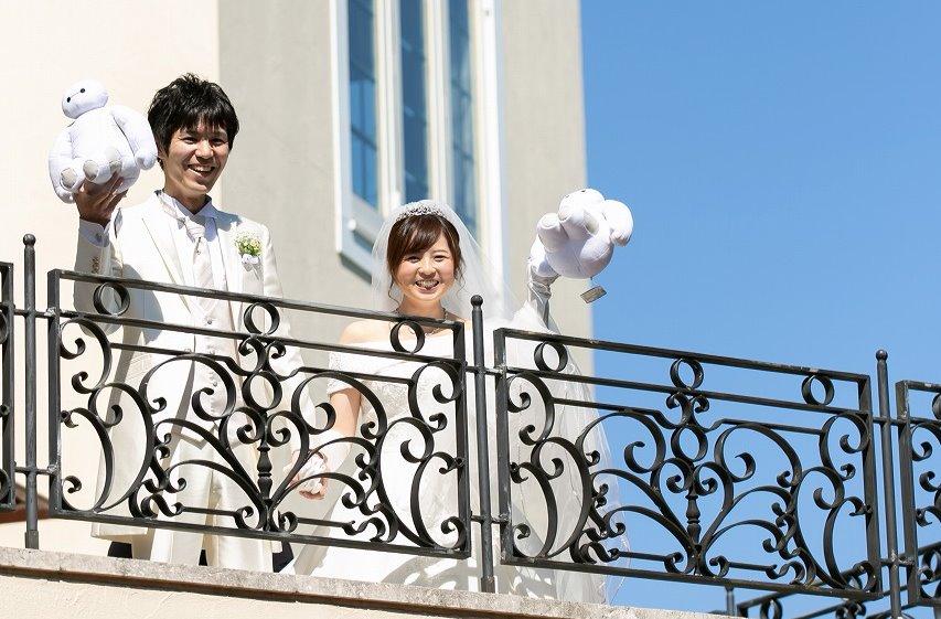 お打ち合わせの中で、初めてのデートが【ベイマックス】の映画という事をお伺いしたので、挙式後のアフターセレモニーでは、ブーケトスの代わりにベイマックストスをご提案。当日は、青空に舞うベイマックスをゲットしようとする沢山のゲストから歓声がわきました。またそのガーデンには、新婦の愛車をウェルカムカーとして飾りました。これには新婦のご家族やご友人からも大好評!一緒に写真を撮るゲストもいらっしゃいました