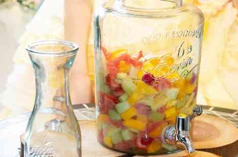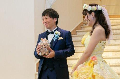 おふたりのご結婚式は夏。 ガーデンの緑、空の太陽と青空が輝くとても美しいシーズンです そこでおふたりは何か夏にぴったりな演出はないか考えていた時に見た目も可愛い「フルーツポンチ」の演出をご提案しました おふたりが各卓を回りゲストはおふたり持つオシャレな瓶にフルーツを入れ、最後はおふたりがシュワシュワのスパークリングジュースを注ぐ夏にぴったりな可愛い演出も取り入れました♪