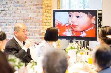 お2人の親御様には共通点が、、それはホームビデオを撮ること。行事はもちろん、普段の様子もホームビデオにしっかりと記録されていました。お2人が音楽をつけて編集し直し、披露宴の間流すことにしました。 お互いの自己紹介も兼ねて上映しましたが、”実はビデオを撮ってくれて大事に育ててくれてありがとう”という意味が込められています。1番嬉しかったのはきっと親御様ですね。