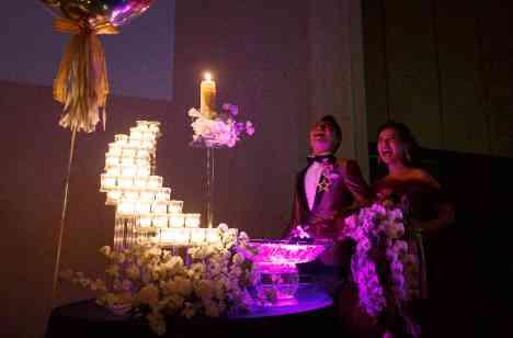 お色直し入場後はフェアリーイリュージョンの演出で、お腹にいるお子様の性別をサプライズで新郎さまへ報告されました。 おふたりで光の水を流し込むと、ピンクに光り女の子だと判明! 新郎さまもゲストからも歓喜の声が上がる瞬間に。 結婚式で記念に残る想い出となりました。これからご家族3人で幸せにお過ごしください。