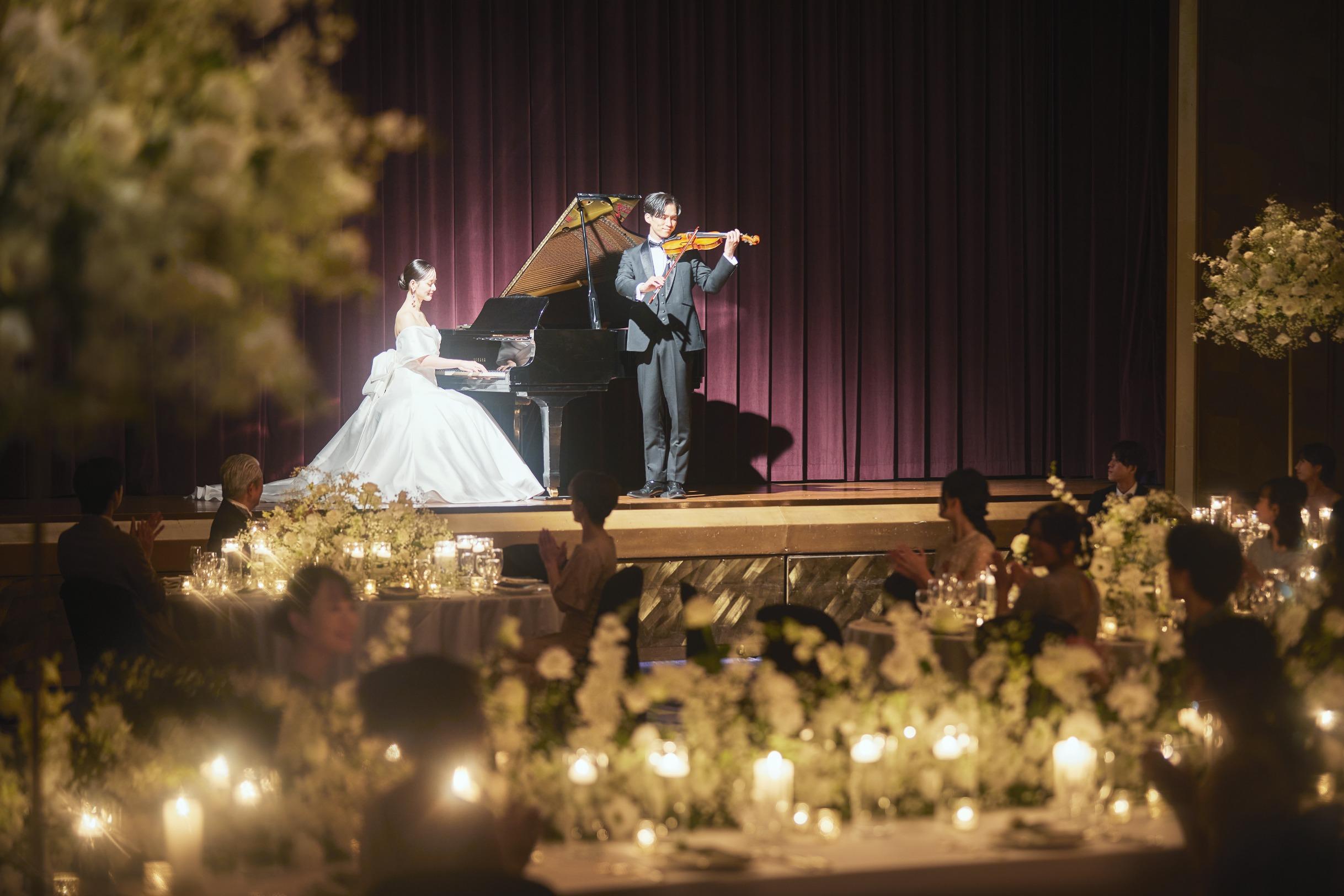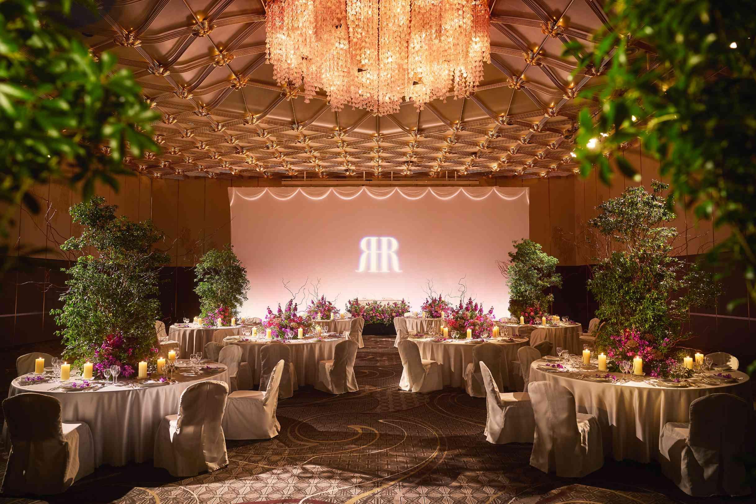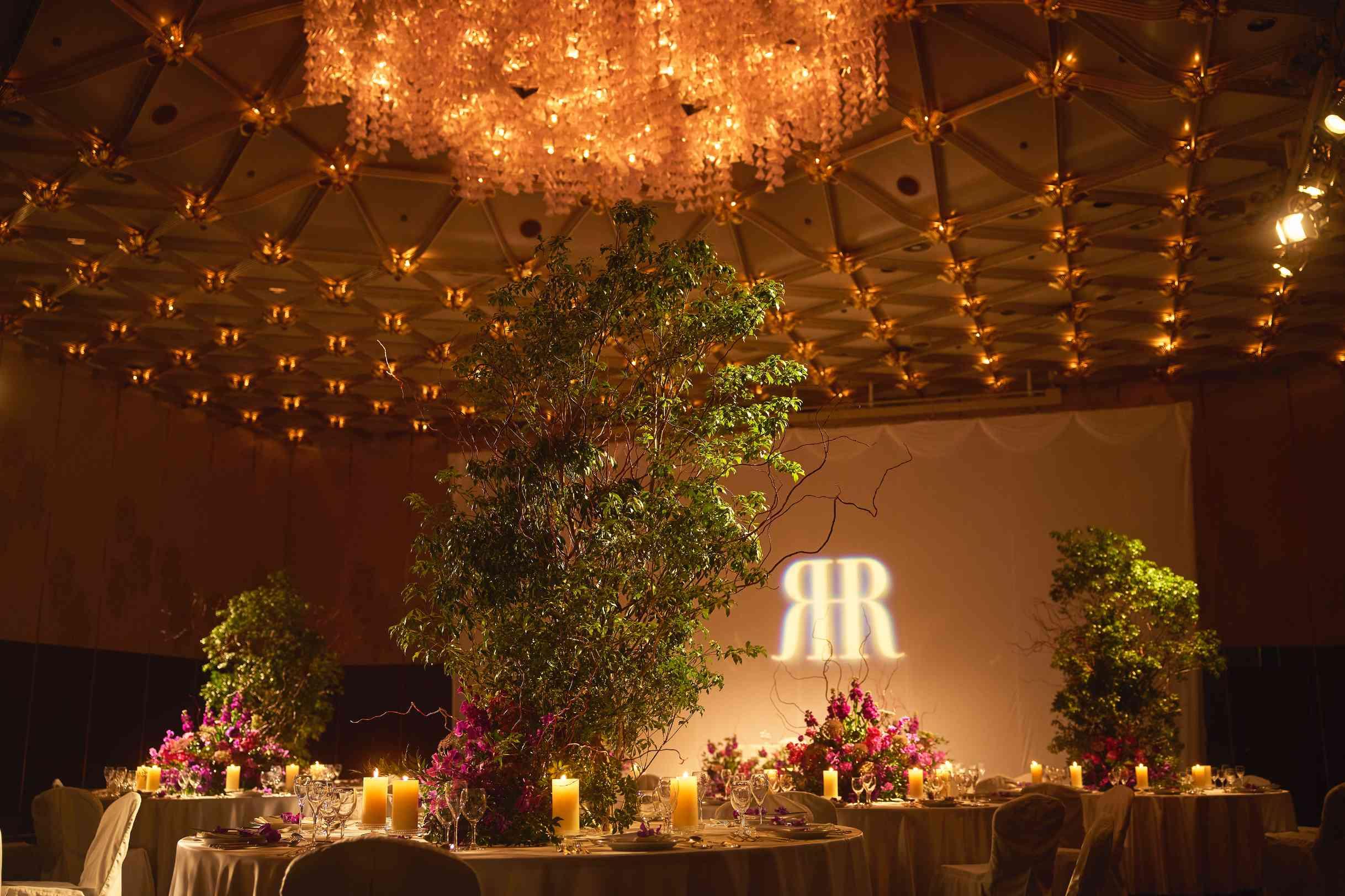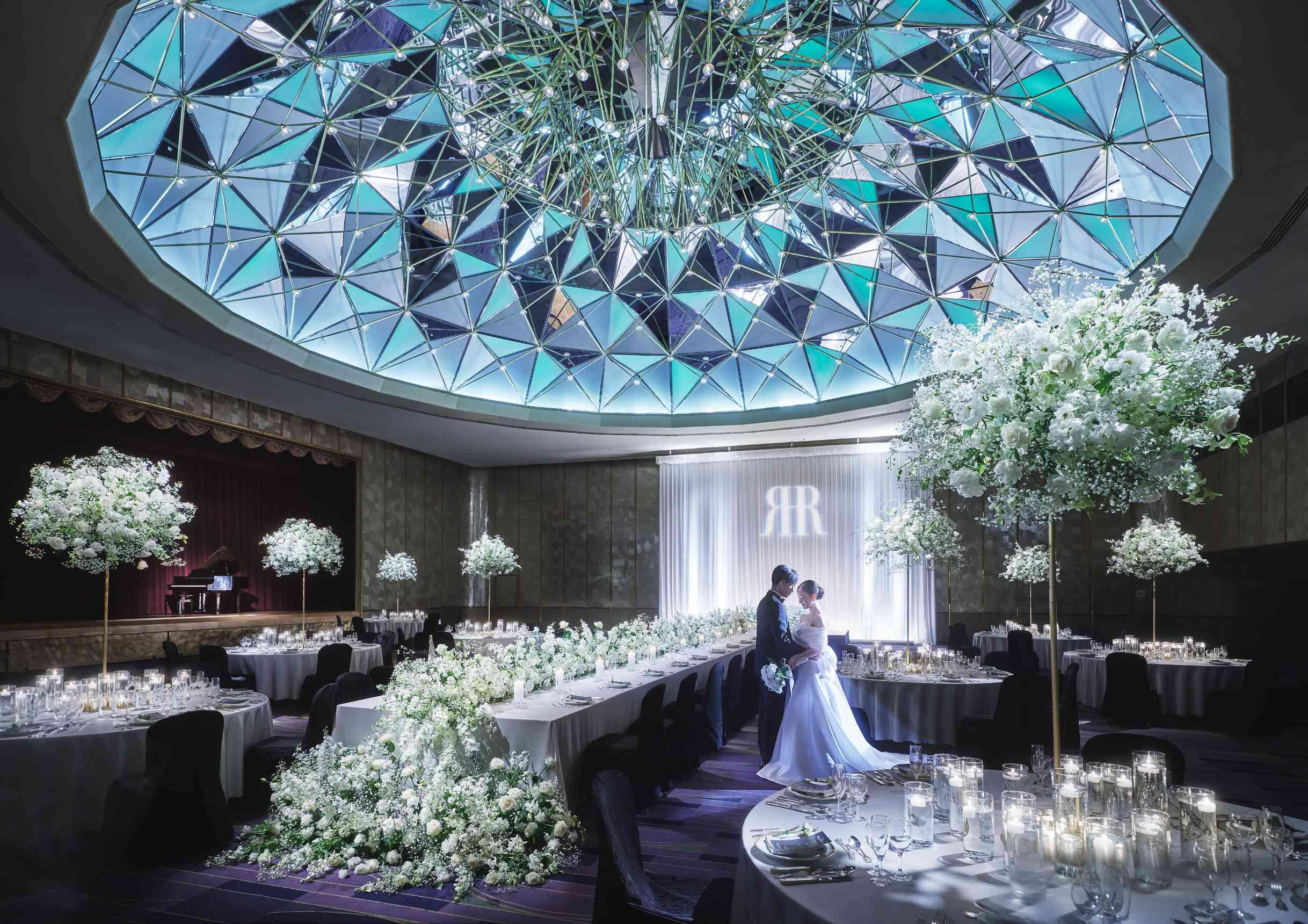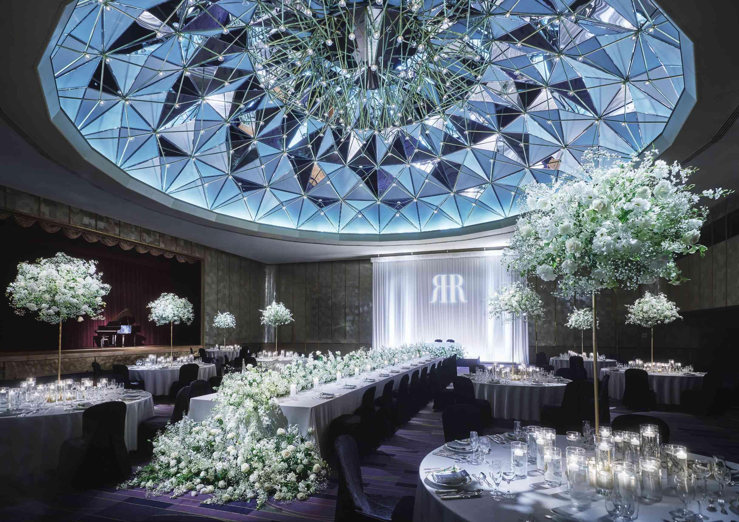 ホテル屈指の大宴会場。演出に合わせて色を変えられるドーム型のシャンデリアや高い天井高さを生かして、ダイナミックな装飾も。光と音楽が織りなす幻想的な空間で、記憶に残るパーティを。