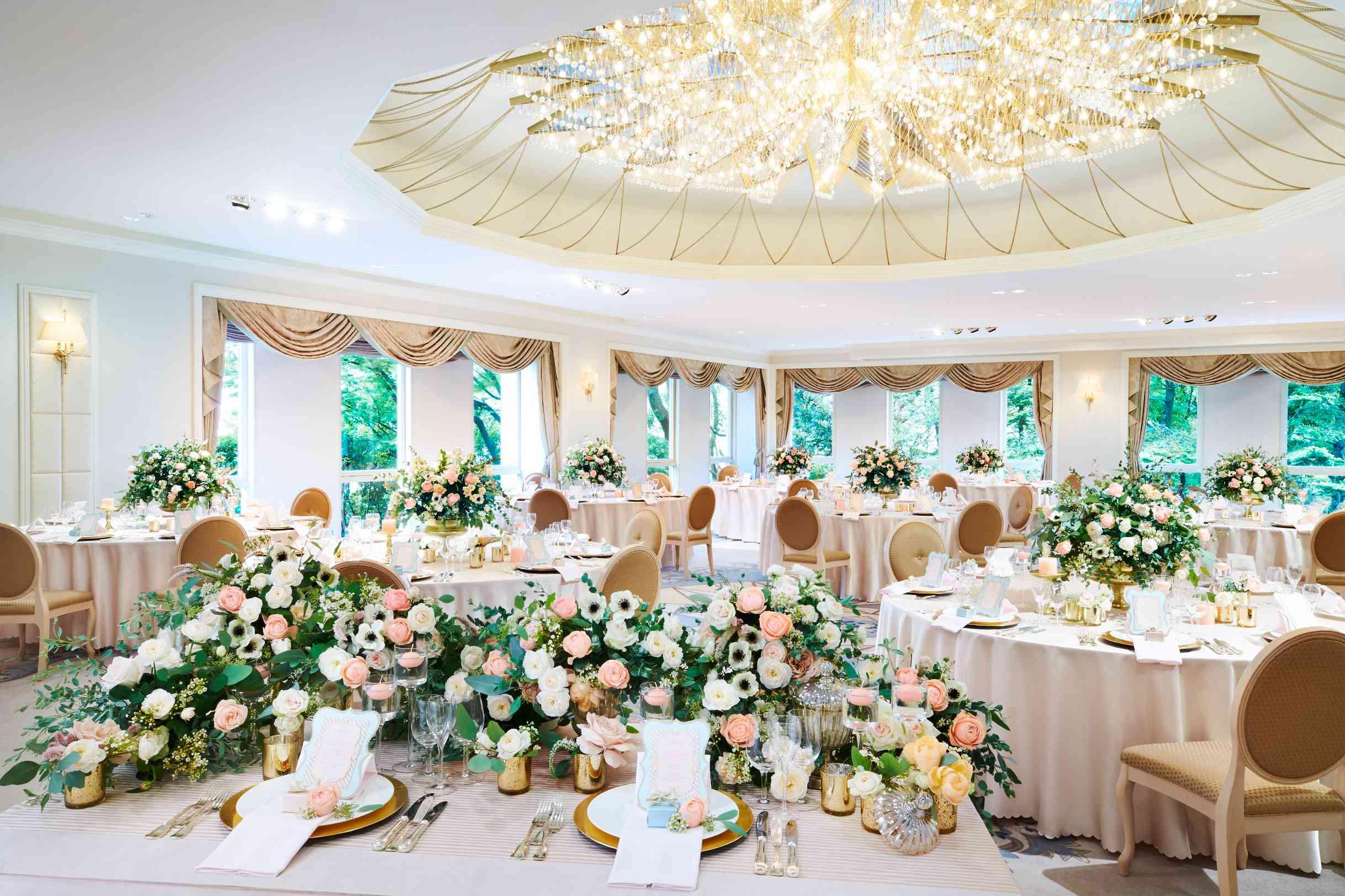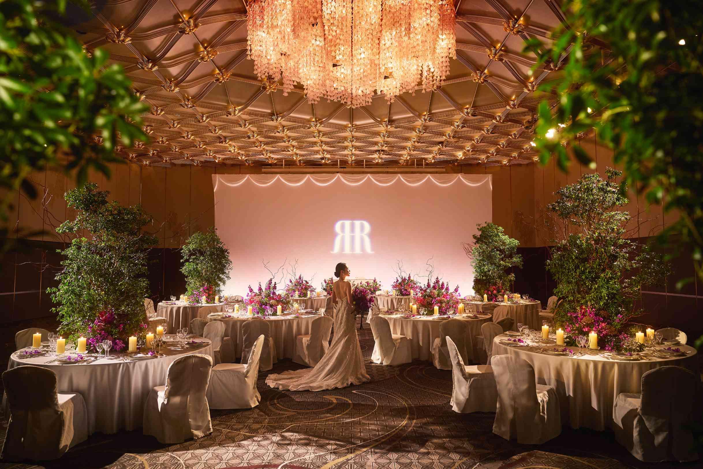 「光琳の間」は、リーガロイヤルホテル大阪の代表的な会場。高い天井と豪華なシャンデリアが織りなすスケール感は圧巻。演出や装飾次第で和風にも洋風にも雰囲気を変えられ、ゲストを魅了する華やかなパーティを。