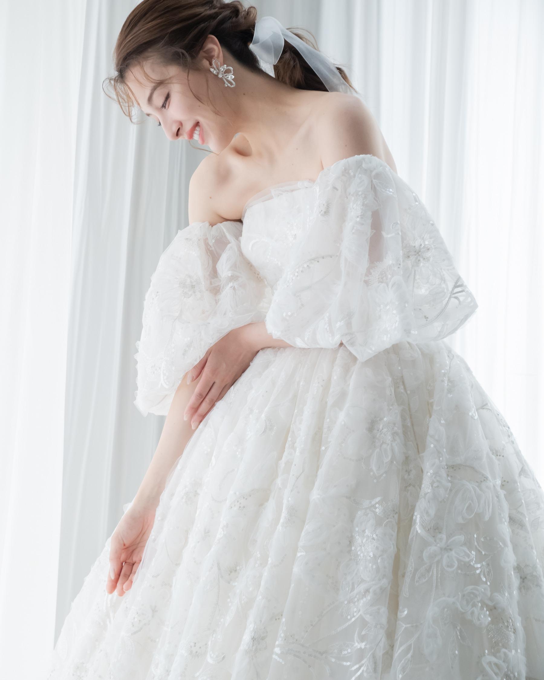 「YUMI KATSURA」「フォーシス&カンパニー」「阪急ウェディングドレスサロン」「ウェディングサロンイノウエ」 幅広いデザインを揃え、運命の一着に出会える特別な体験を提供します。