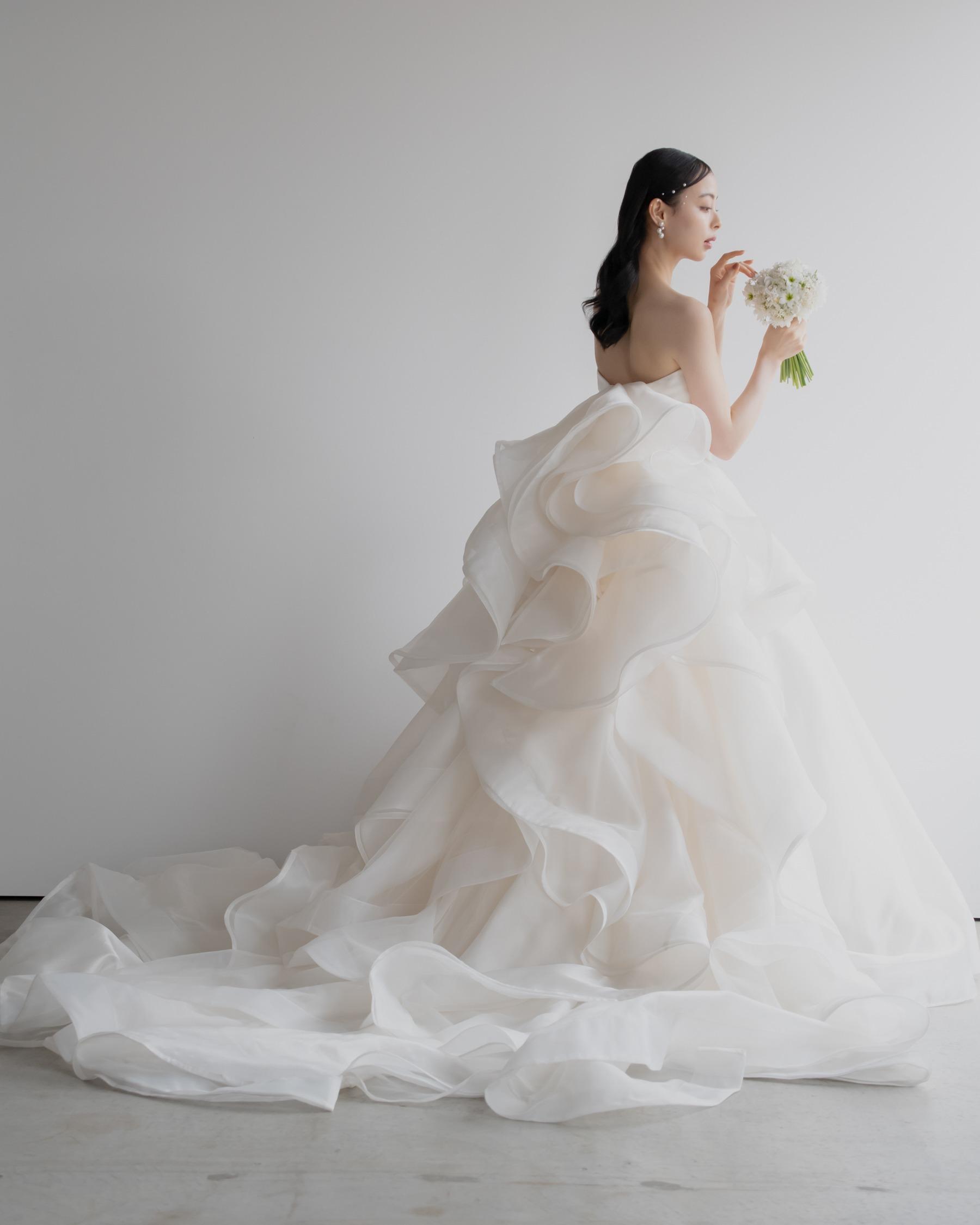 「YUMI KATSURA」「フォーシス&カンパニー」「阪急ウェディングドレスサロン」「ウェディングサロンイノウエ」 幅広いデザインを揃え、運命の一着に出会える特別な体験を提供します。
