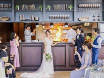 当日は披露宴会場に常設されているオープンキッチンよりすぐに運ばれる熱々のお料理を堪能。すぐそばで調理されるので、シェフが創り上げる過程を見ることができ、また香りや音さえもが演出のひとつになります。