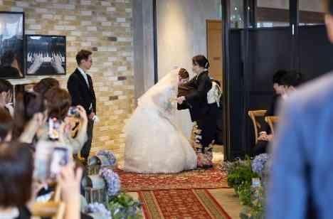 今まで育ててくださった親御様から入場前にジャケットセレモニーやベールダウンやエスコートをお願いしました。 少し恥ずかしい想いもありながら、しっかりと親御様に感謝の思いをお伝えできたのではないでしょうか。新郎新婦様の御兄弟様もしっかりと見守ってくださり、大切な瞬間を記録に収めようとされていらしゃる姿が印象的でした。