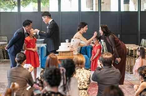 おふたりを繋げてくださったキューピッドさんはご家族揃ってご参列されました。お子様の運動会にも行くほど家族ぐるみでお世話になっている方だそうです。 ファーストバイトの次に新郎新婦からご家族をお呼び出し。 お子様ふたりからの「結婚おめでとう」というお祝いの言葉に、会場中はほっこりした雰囲気になりました。
