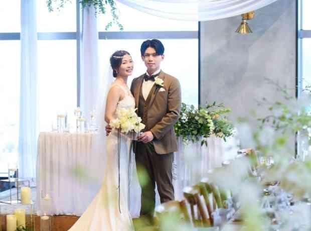 再入場後、新郎新婦からに皆様へご挨拶。その瞬間、ゲストテーブルのキャンドルに明るい火を灯すキャンドルイリュージョンを行いました。同時にカーテンが開くと、いつのまにか日が落ちていて、101メートルからの夜景が見えます。ゆらゆら揺れる火とキラキラ光る夜景が重なり合い、会場は幻想的でロマンティックな雰囲気に包まれました。