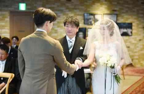 お母様からの最後の身支度、お父様からグルーブを受け取った後、司会者より新郎の想いを代読。曲最大の山場でご両親から背中を押してもらうことで、より会場の温度感が高まりました。その後、新婦入場のタイミングで司会より親御様へ、新郎へ、新婦の想いを代読。一歩一歩が一年一年で人生を表すと言われるウェディングロード。最初は涙していた新婦も、歩みを進めるにつれて笑顔の裏にたくましい表情が垣間見えました。