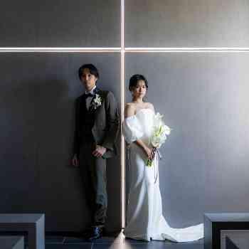 グレー×黒を基調にしたスタイリッシュなチャペルです。 挙式はアイリッシュハープを使用した生演奏で 執り行われます。お2人とゲストの距離も 近く皆からの「おめでとう」を肌で感じる事ができます。