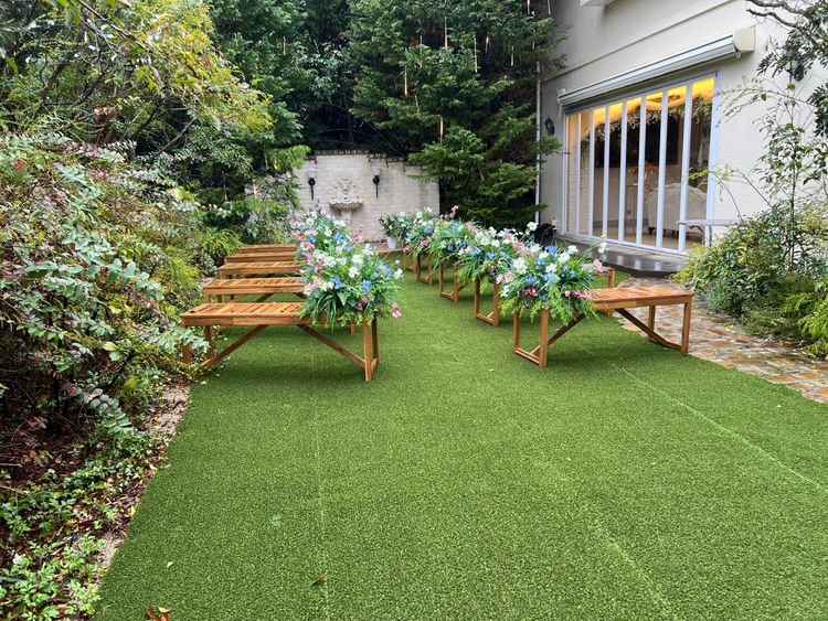 緑も多く、白とのコントラストが映えるリーズナブルな式場
