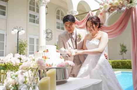 開放的なガーデンでのケーキセレモニー